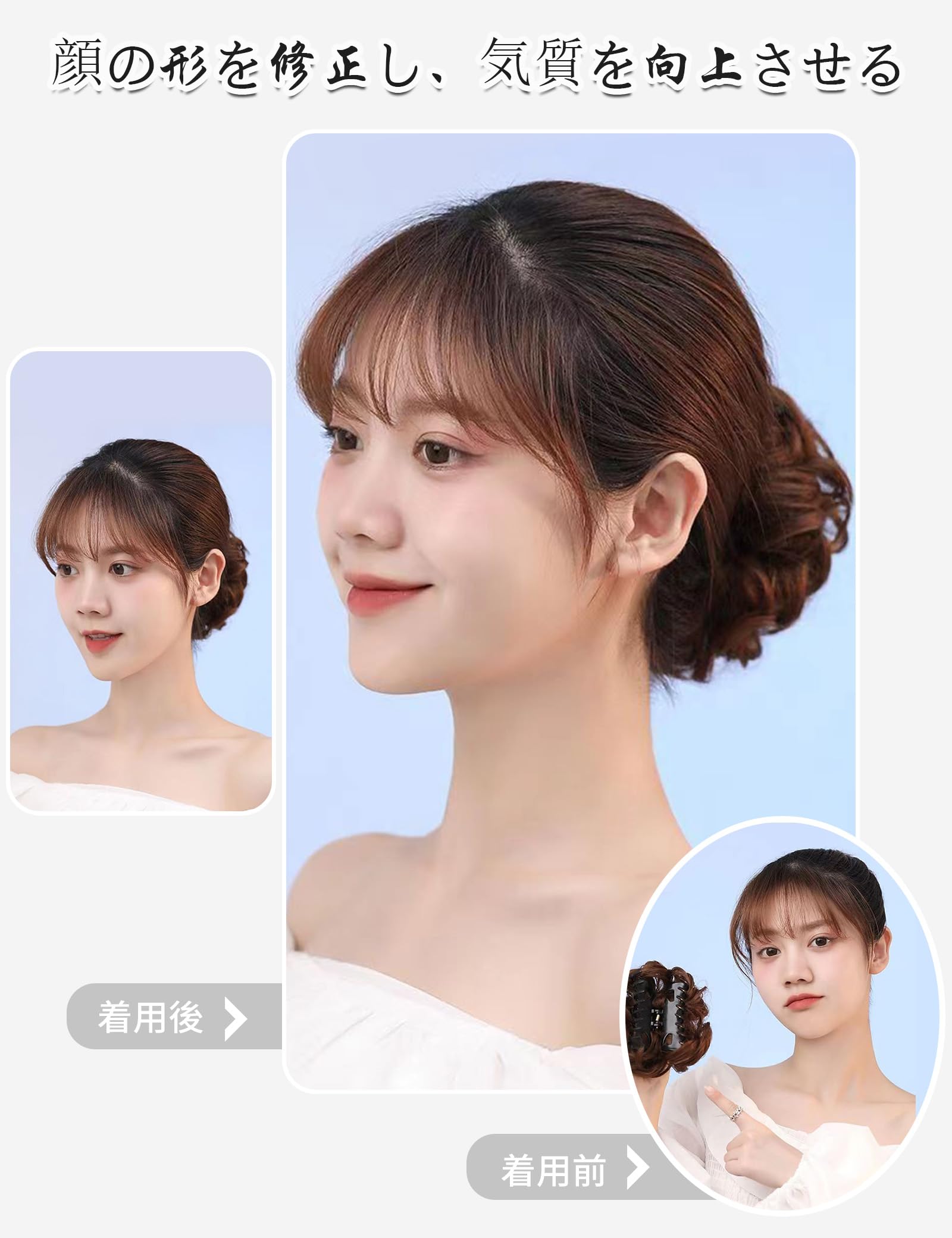 ?【好ましい素材】おまんじゅうお団子 ウィッグ高品質の韓国のマットな高温シルクで作られています。ふんわりとした自然な髪質で、本物の髪に近い色なので、つけていると髪に馴染みやすく、見違えるほどのナチュラル感が得られます!
