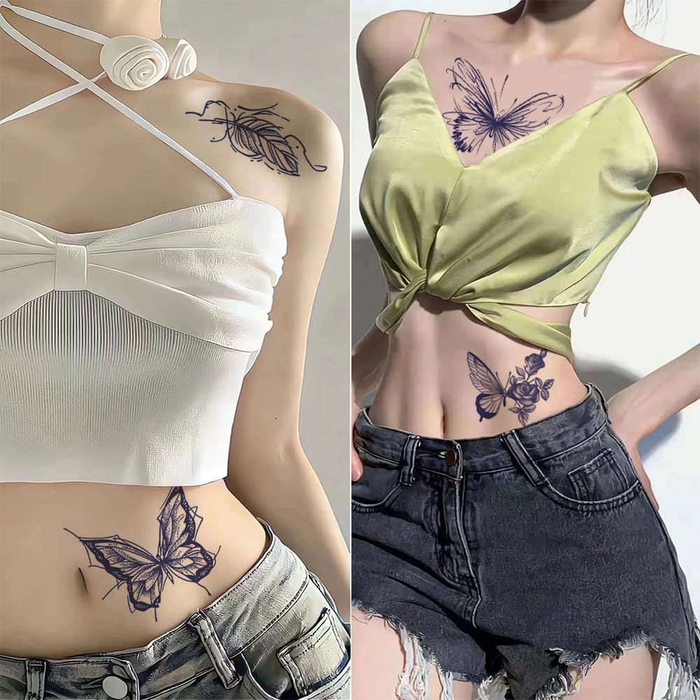 【多用途】蝶のタトゥーシールは、腕、肩、足首、手首、胸部、背中、足、手など、好きな場所に貼ることができます。さまざまなニーズに対応します。