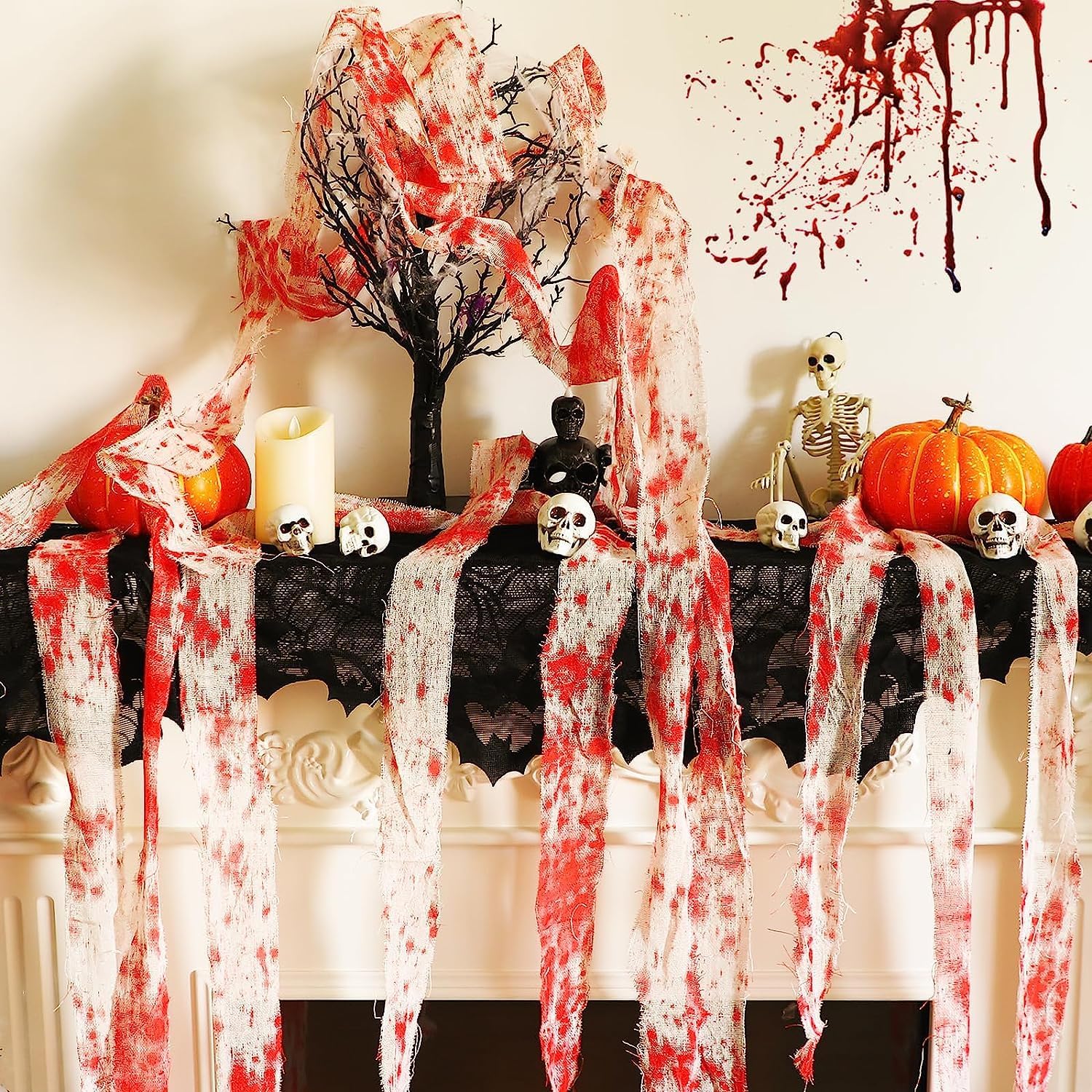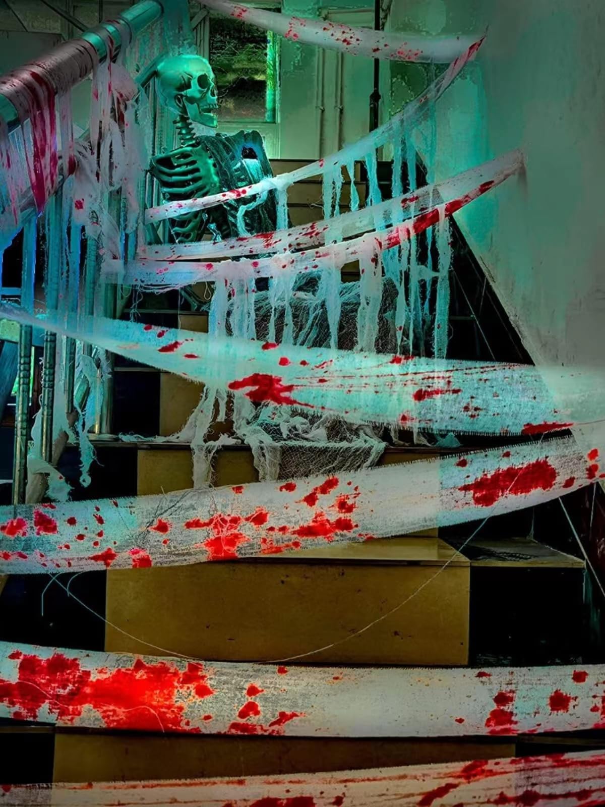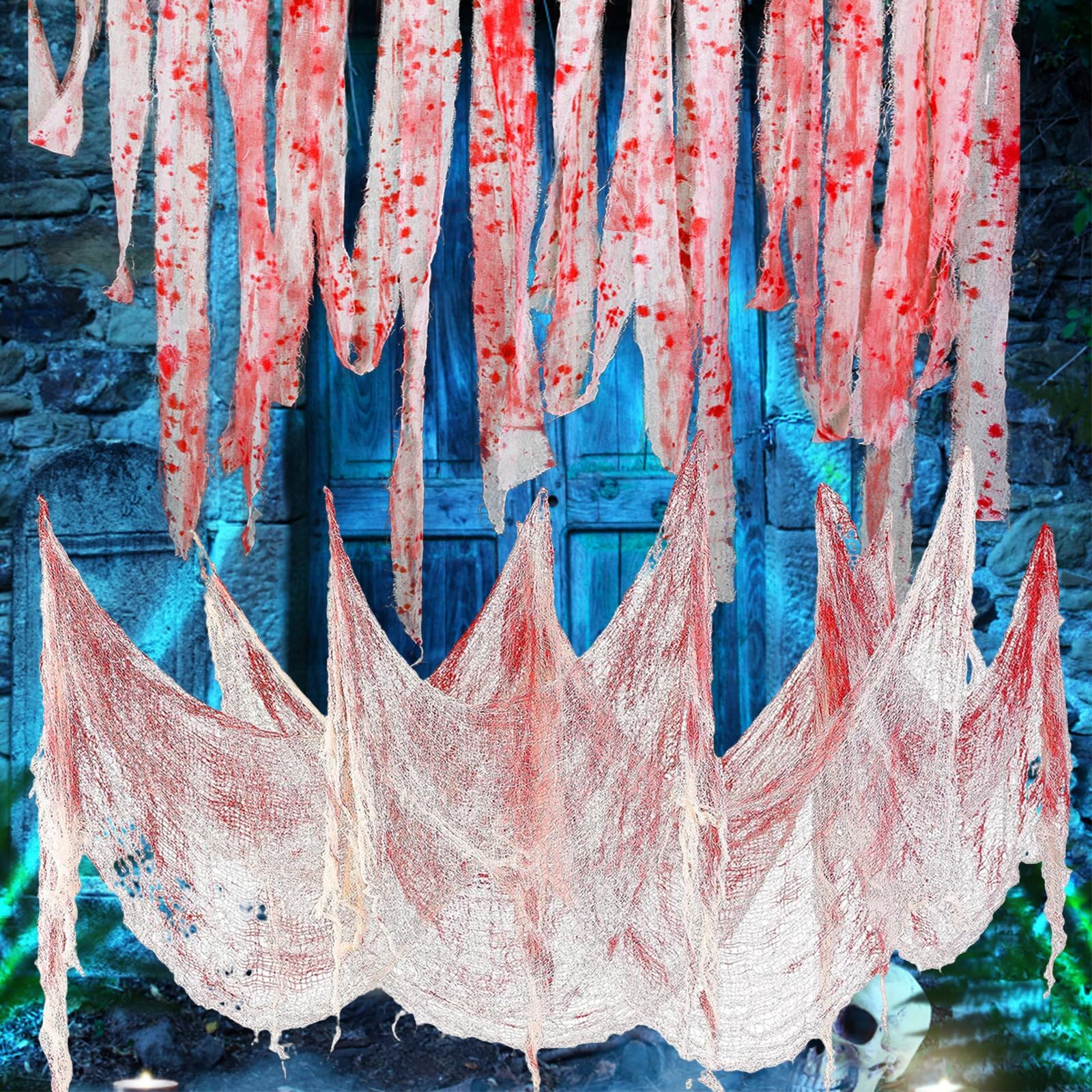 用途が広い:血まみれのガーゼをドア、玄関、木、窓、椅子などに掛けます。また、クモ、コウモリ、ドクロ、その他のハロウィンの飾り物を飾ることもできます。ふんわりとした不気味な雰囲気を醸し出すことができます。