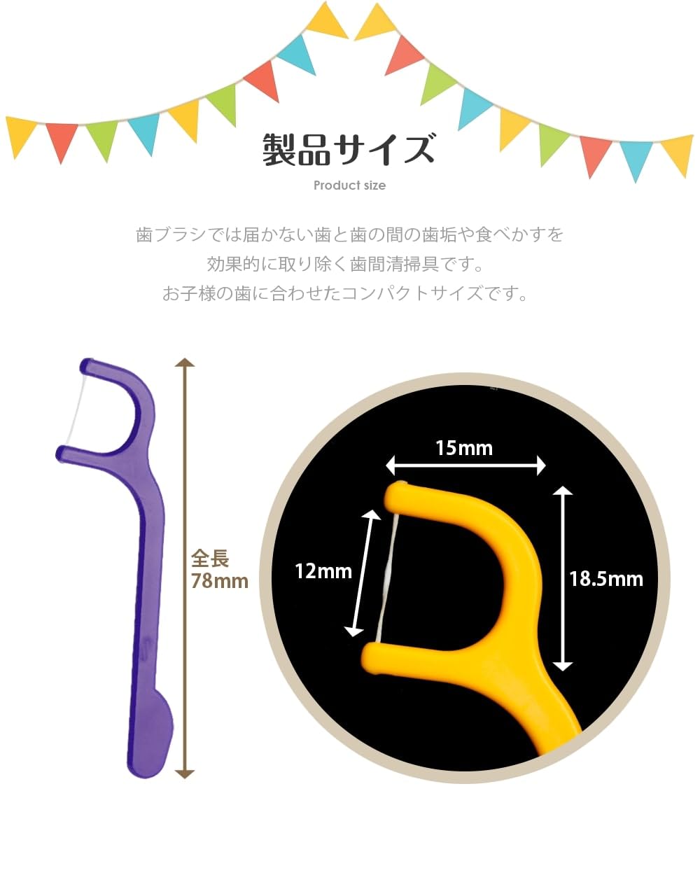 こどもの歯に合わせたスモールサイズのフロス、60本入。