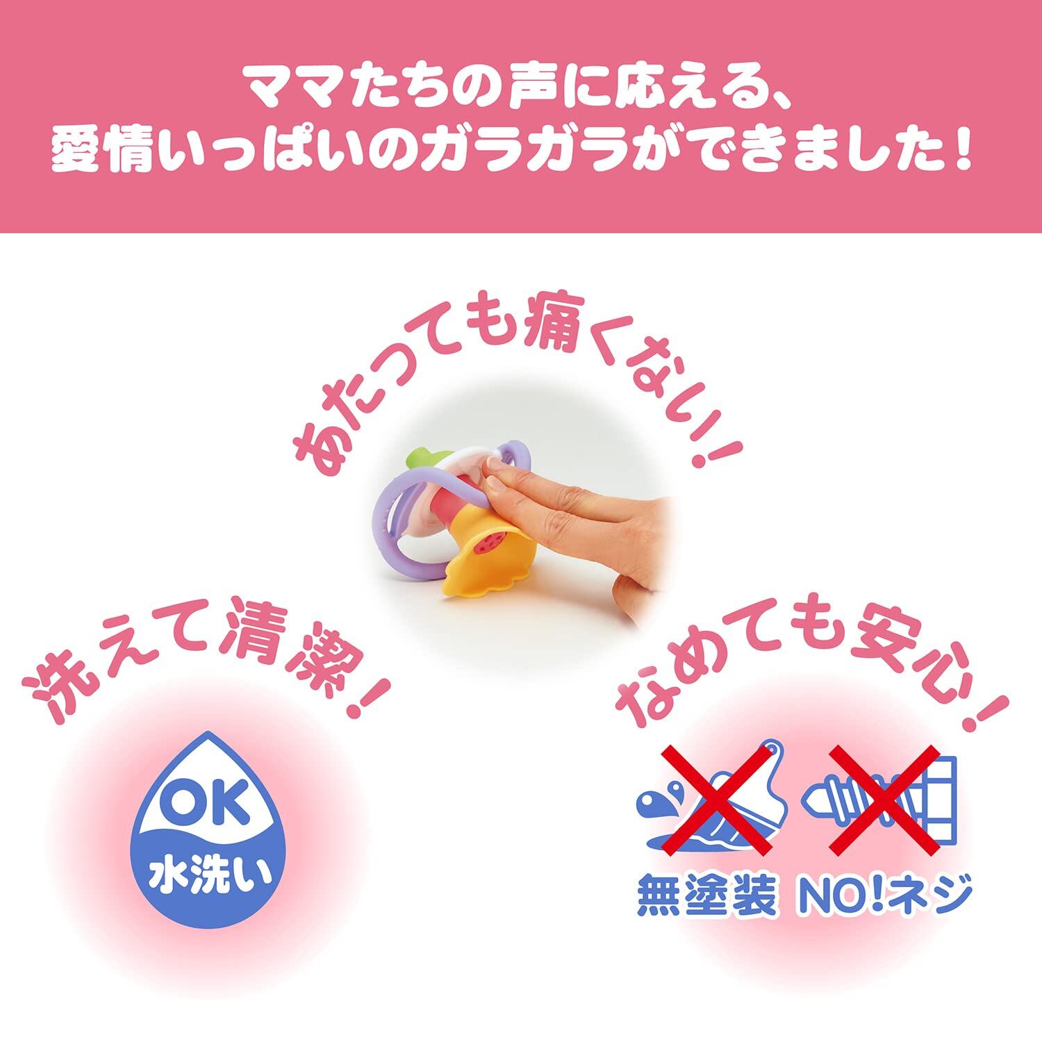 当たっても痛くない柔らかい材質なので、赤ちゃんが自分で振って顔にコツンしても大丈夫。