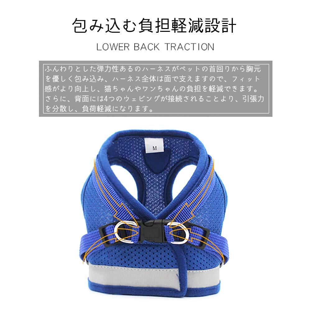 【安全性向上の夜反射ストライプ】胴輪に3M超反射ストライプ付きのハーネスは、極端な低照度条件では周囲の光を反射し、夜間散歩時に最大の視認性を確保し、暗闇になってもペットがはっきりと見えます。ペットの安全を保つことができます。