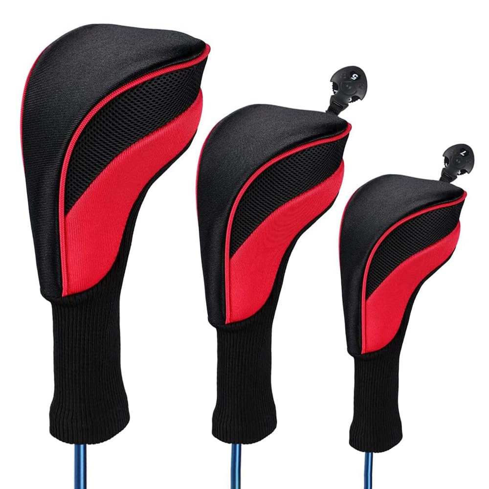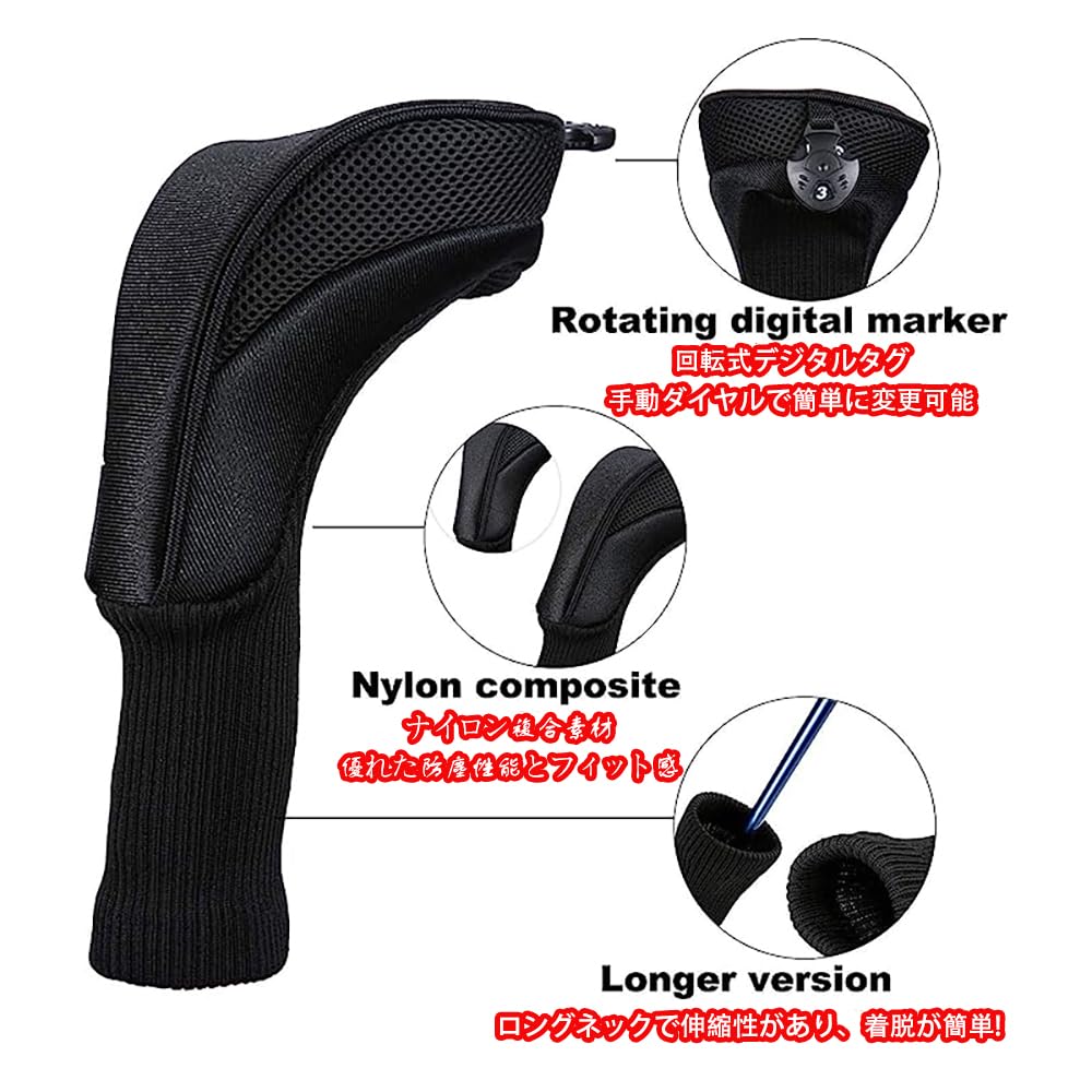 クラブヘッドカバー ロングネックタイプナイロン3点セット クラブウッドカバー ドライバー用 フェアウェイウッド用 ユーティリティ用 番号タグ付き 軽量 耐摩耗 長持ち メンズ・レディース兼用