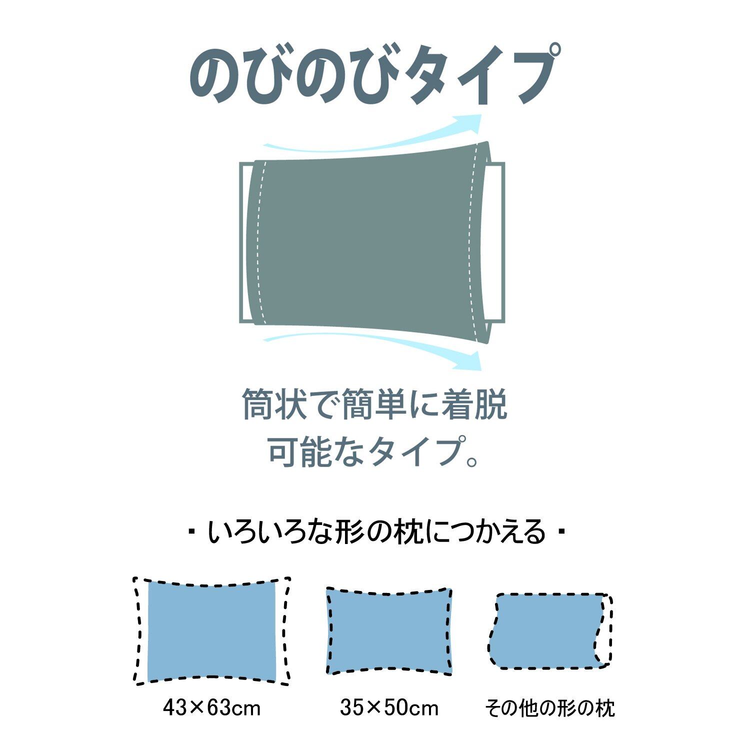 枕サイズ:35×50cm~43×63cmの枕に対応。カバーの仕様は筒型、ファスナーは無し、伸縮性のある生地で ウレタン枕にみられる 凹凸型の枕にも使え便利です。ファスナーが無く着脱簡単の為、毎日手軽にお洗濯出来て清潔に使用できます。