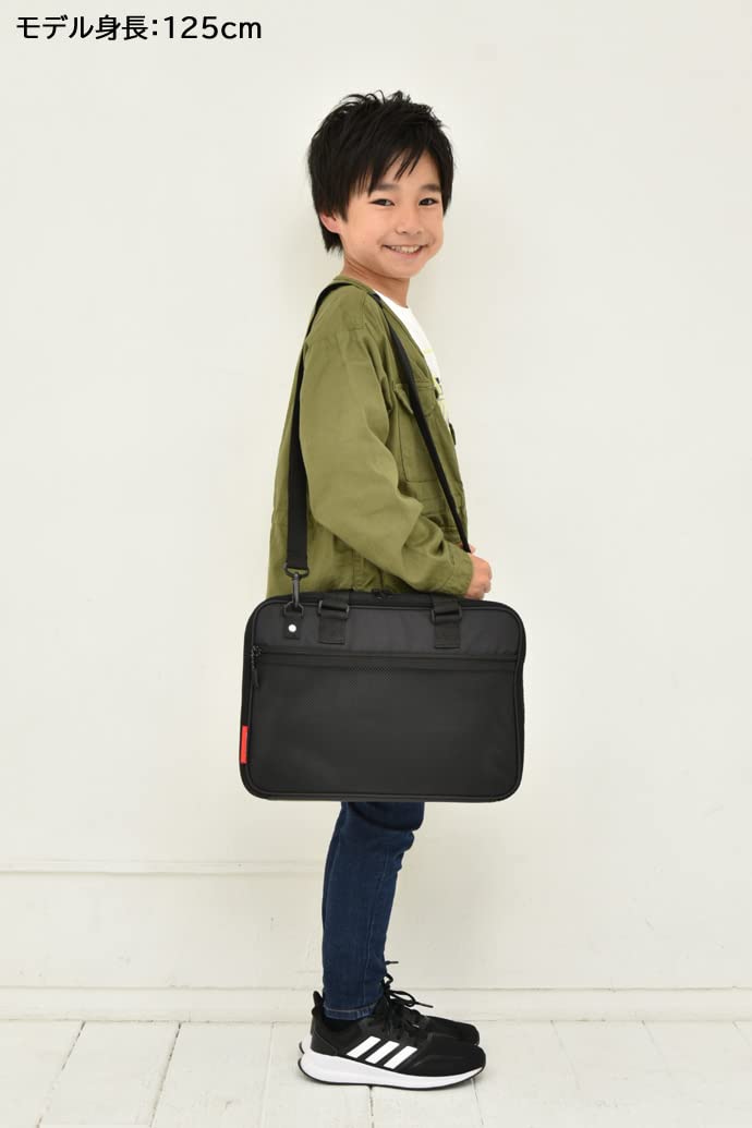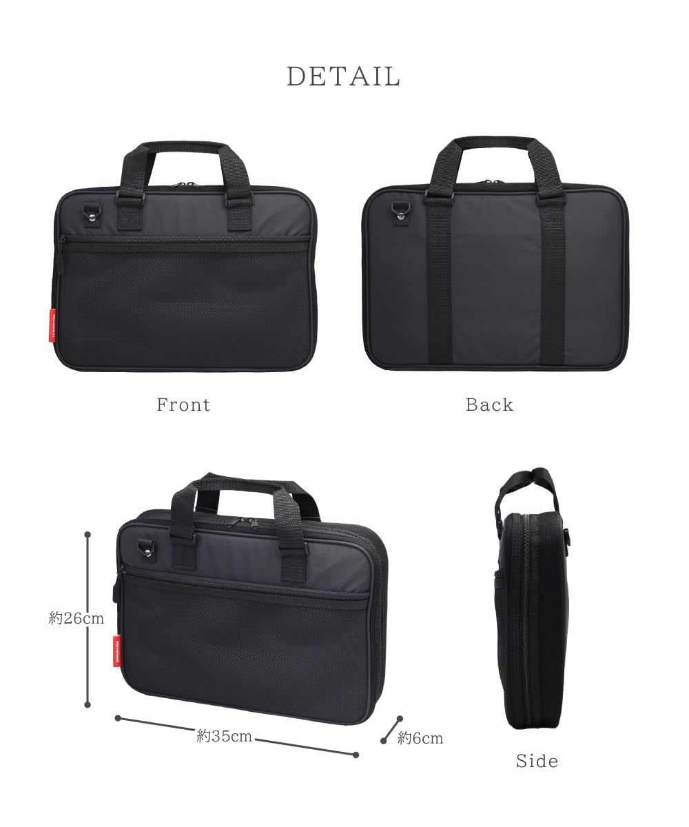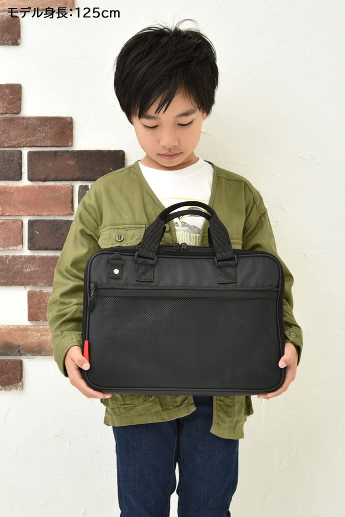 汚れが目立ちにくい、黒い布地のシンプルでスタンダードなバッグです。表面にメッシュポケットがついています。【バッグサイズ】外寸 縦26cm×横35cm×奥行6cm