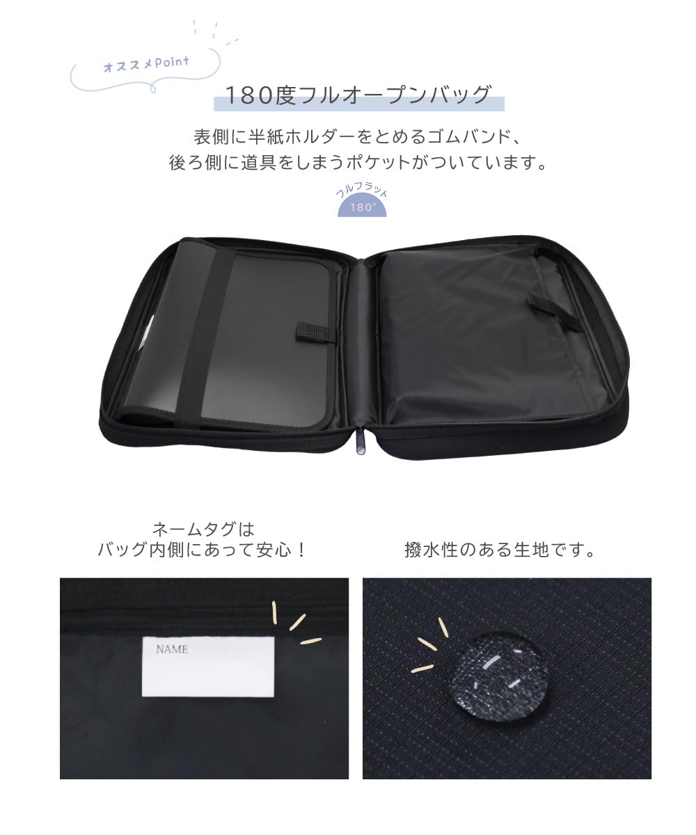 フルオープンで大きく開くので、書道用具の出し入れラクラク!側面に通気性のあるメッシュ素材を使用しているので、カビを防いで清潔に使えます。
