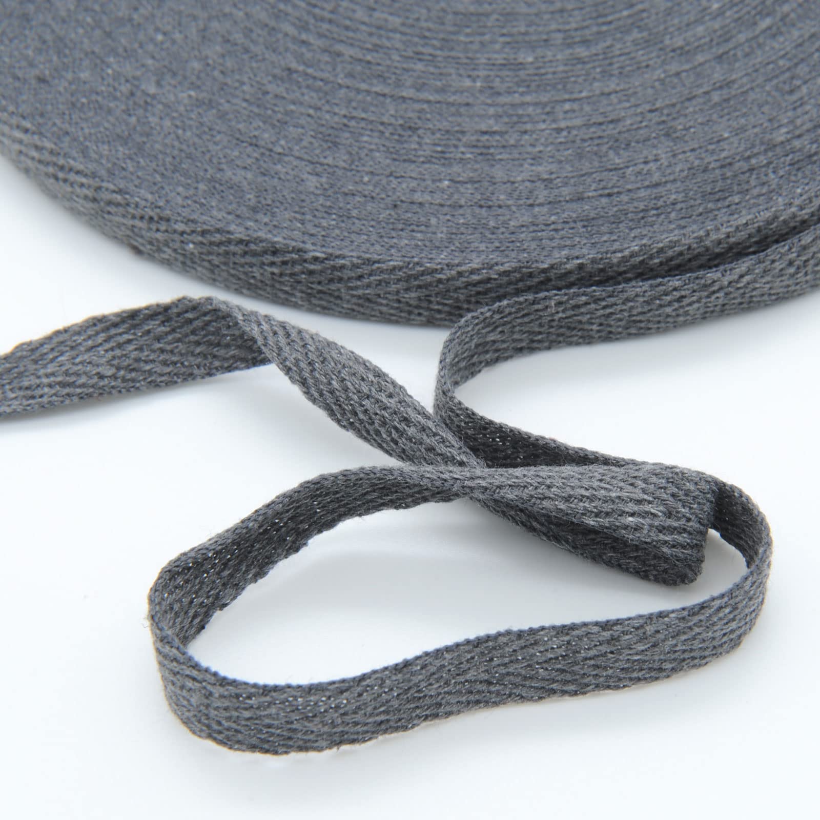 コットン100%の薄手の綾テープです。サイズ:長さ 40m 幅 1.0cm 厚さ 0.5mm 素材:綿 色:ダークグレー。綾織で、伸縮性がよくシワがよりにくいので手芸やアクセサリー作りにも使えます。鞄の持ち手、エプロンや巾着のひもなどにいかがでしょうか。ちょっと変わったプレゼントのラッピング用テープにも。まれにほつれ、結び目、色ムラがあることがございます。商品は40m以上あるように整えておりますので何卒ご了承ください。