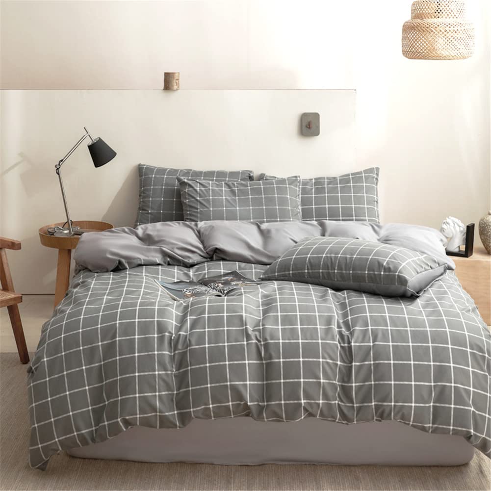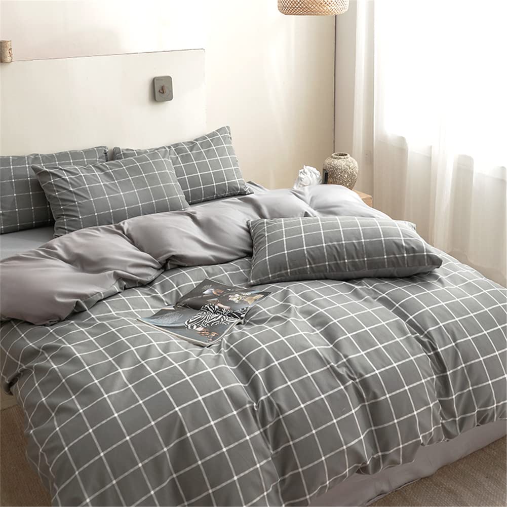 掛け布団カバー 布団カバー シングル 150×210cm チェック グレー 柄 8ヶ所ヒモ付き 掛ふとんカバー 掛けふとんカバー ふとんカバー 洗える 抗菌 防臭