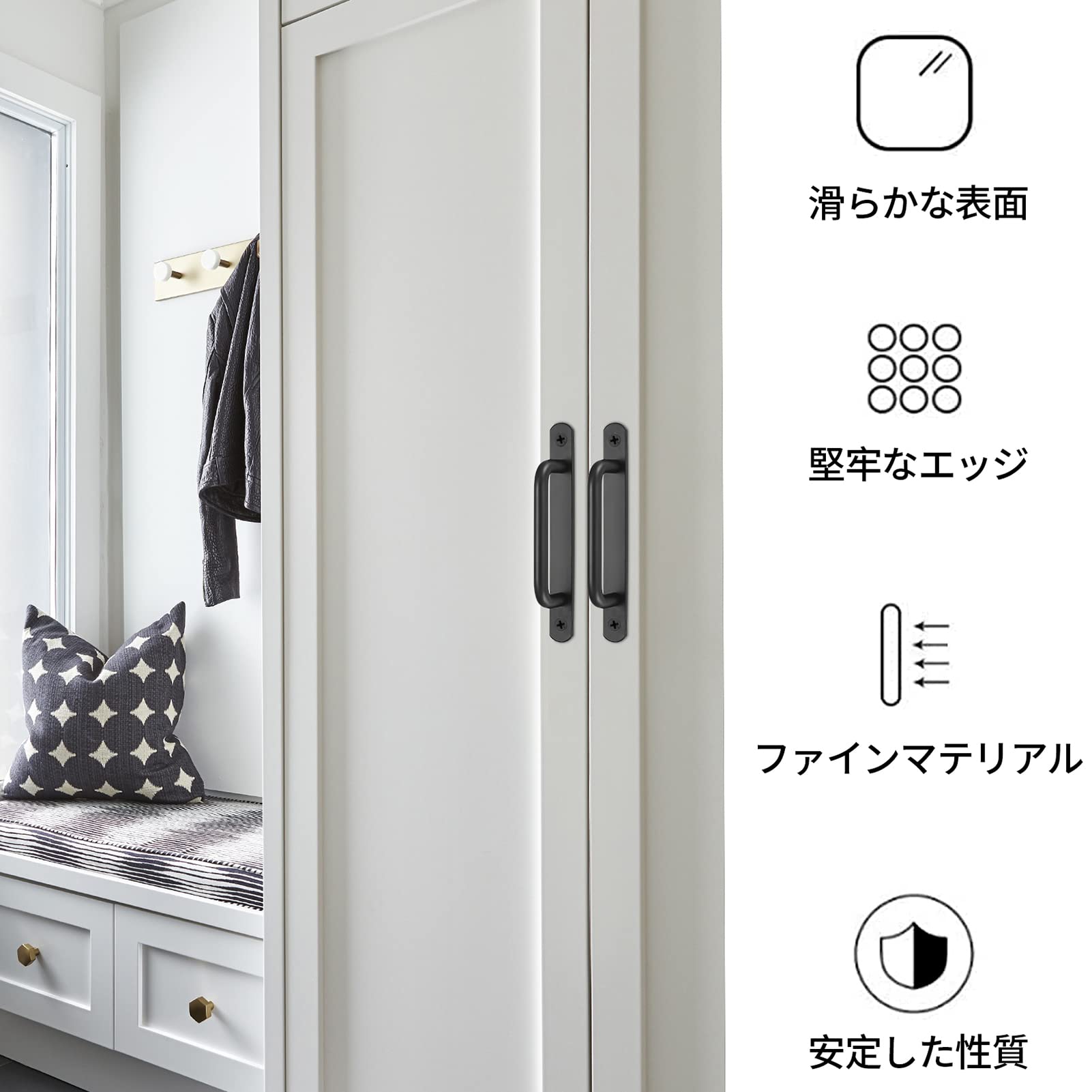 優れた素材:引き戸の取っ手は高品質のステンレス素材を採用し、黒色塗装処理で耐腐食性があり、壊れたり色あせたりしにくく、頑丈で耐久性があります。