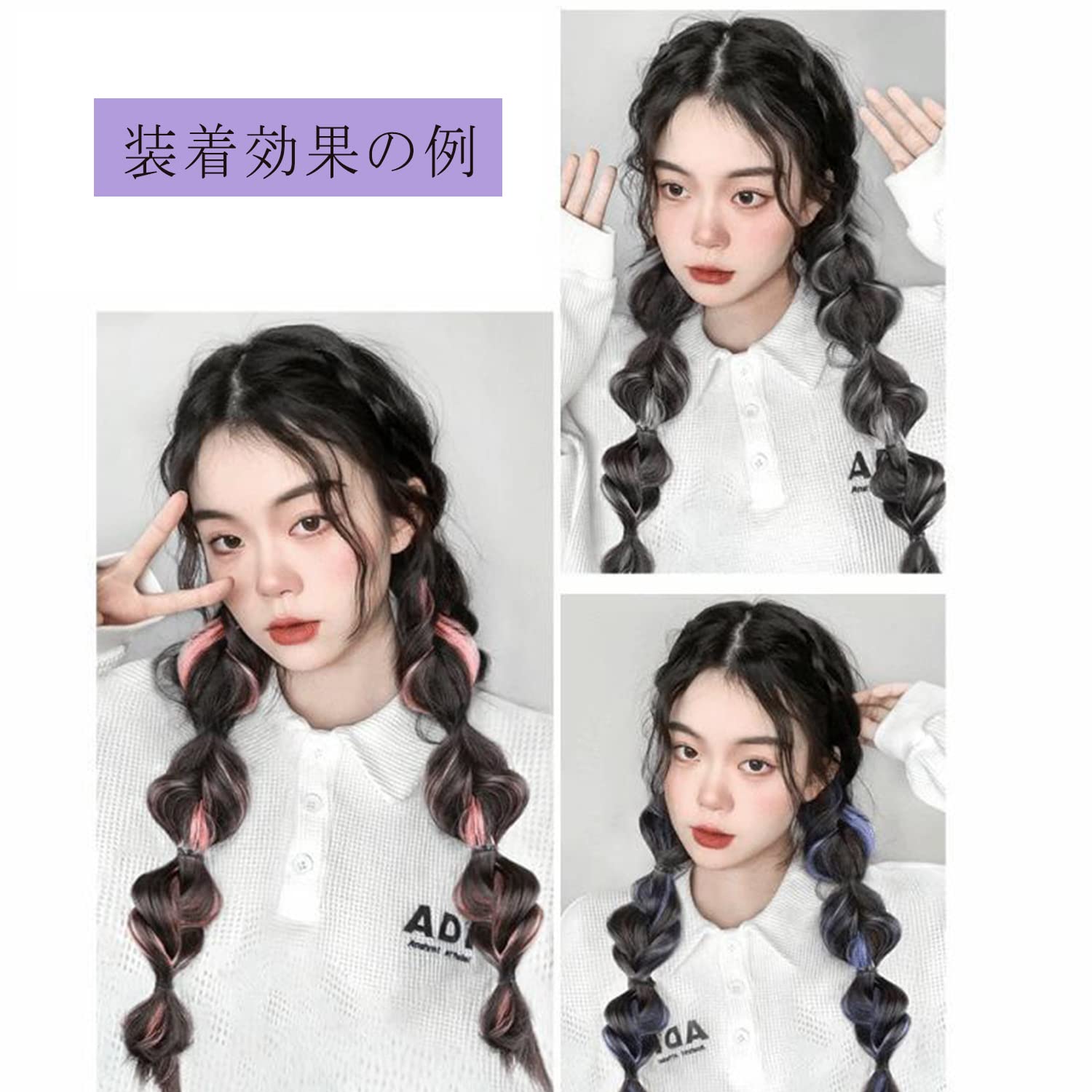 YOVOY ヘアエクステ 編み込み ウィッグ エクステンション ポニーテール ウィッグ カラー エクステ 編み込み エクステ 付け毛 カラフル 髪の毛 ウィッグエクステンション キッズ 子供 大人 ダンス 発表会 イベント パーティー コスチューム 2本セット (ピンク)