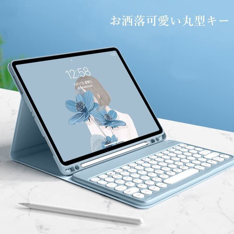 【在庫のみ】2021 iPad9 iPad8 iPad7 iPad Air3 Pro10.5 キーボード ケース 丸型キー 可愛い カラーキーボード カラフル 第 9 8 7 世代 アイパッド 10.2 10.5 インチ 丸い 分離式 キーボード付き カバー アップル ペンシル 収納可能 (ブルー)