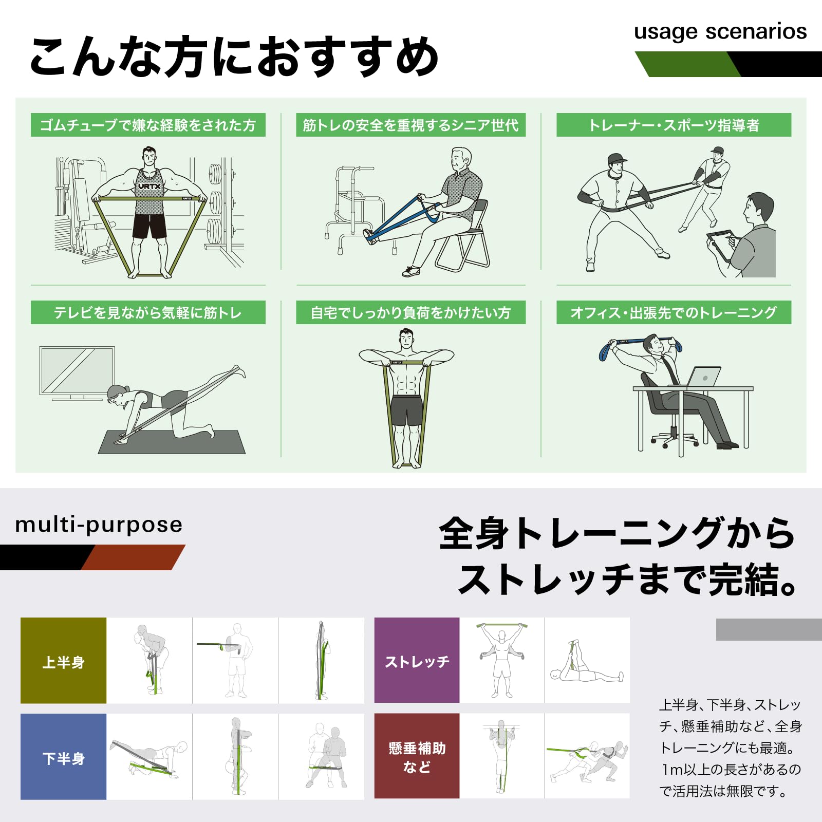 【米特許取得】VRTX フィットネスバンド トレーニングチューブ 筋トレ 耐久性 肌に優しい 1キロから104キロ 8種類 懸垂 ストレッチ 野球 ゴルフ 胸筋 下半身 グッドデザイン受賞 布製ゴム