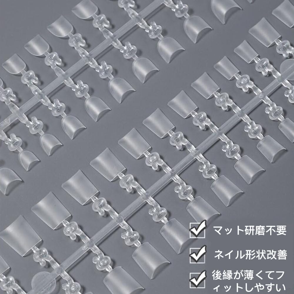 【サンディング済み表面】細かい凹凸が施されたチップを使用することで、ジェル塗布前のサンディング作業が不要。時間を節約しつつ、ジェルの密着性を高め、剥がれにくいネイルを簡単に作成可能。