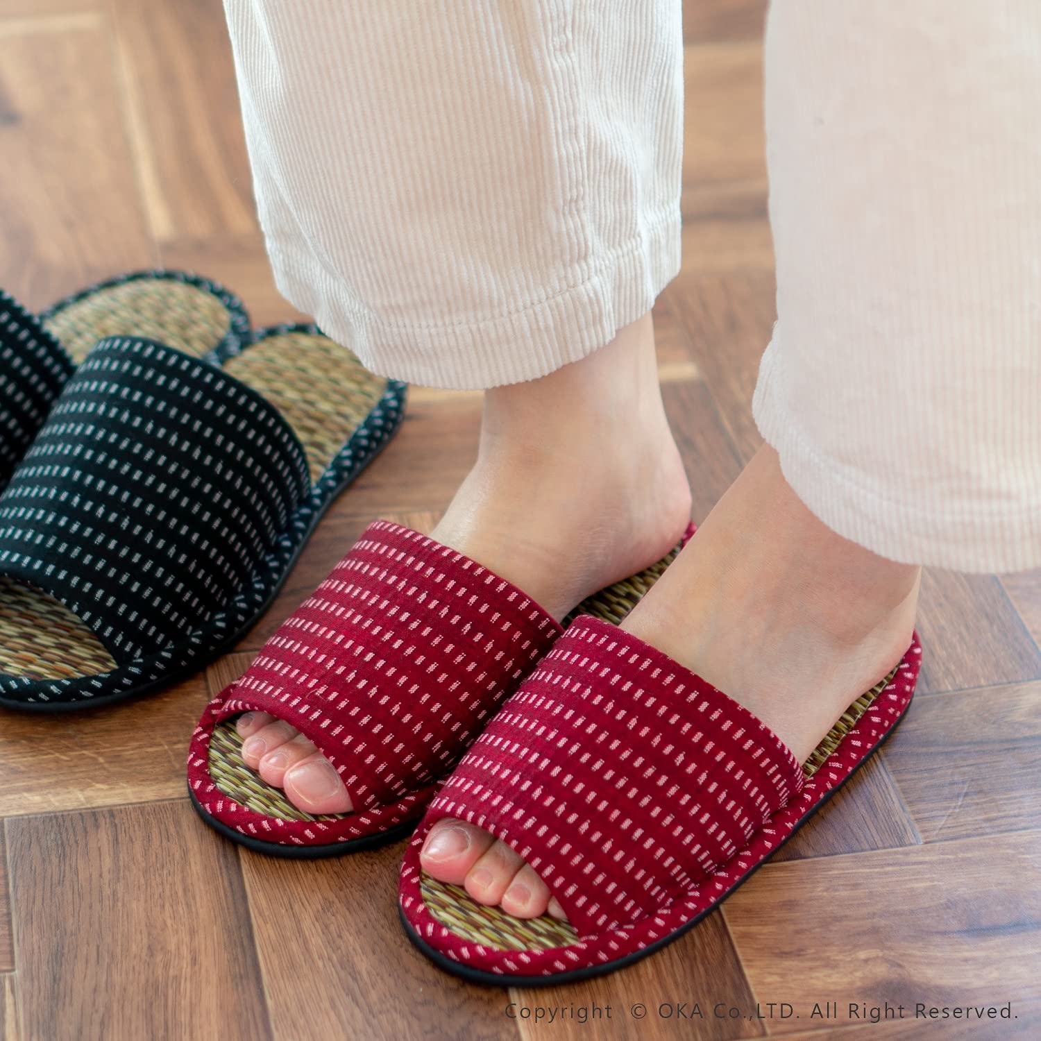 オカ(OKA) 日本製久留米織畳スリッパ Mサイズ レッド (ルームシューズ)