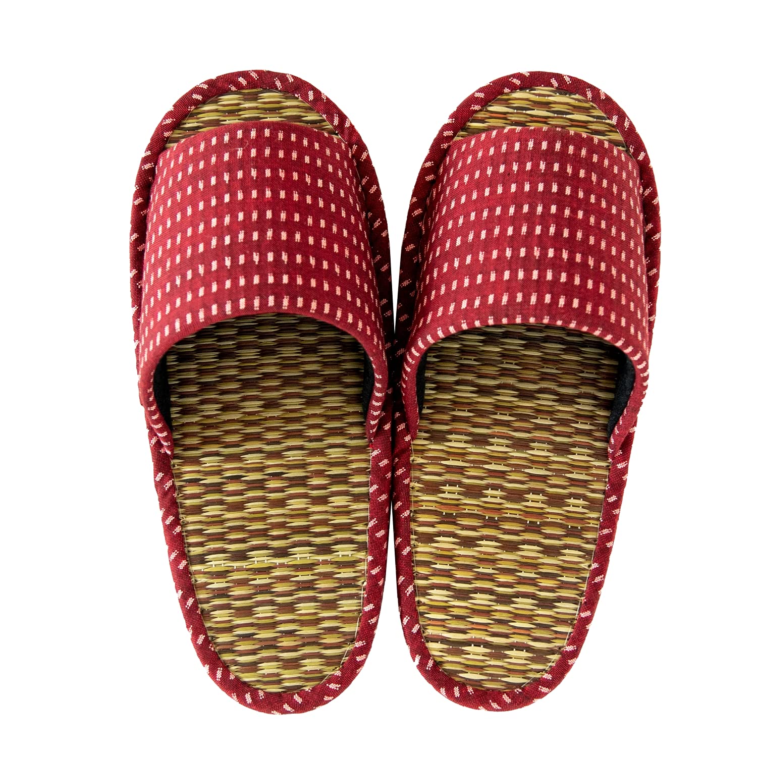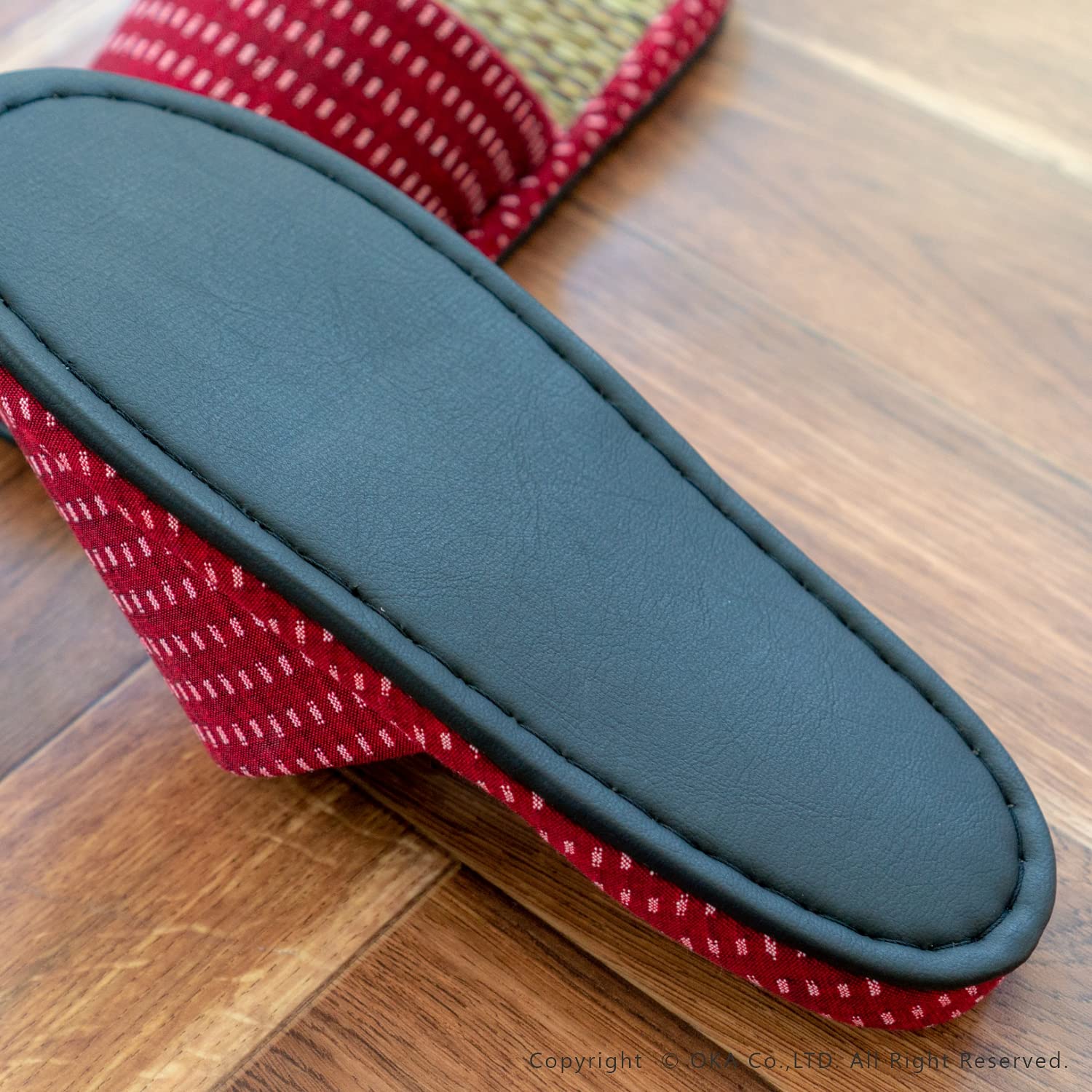 【努力特価】オカ(OKA) 日本製久留米織畳スリッパ Mサイズ レッド (ルームシューズ)