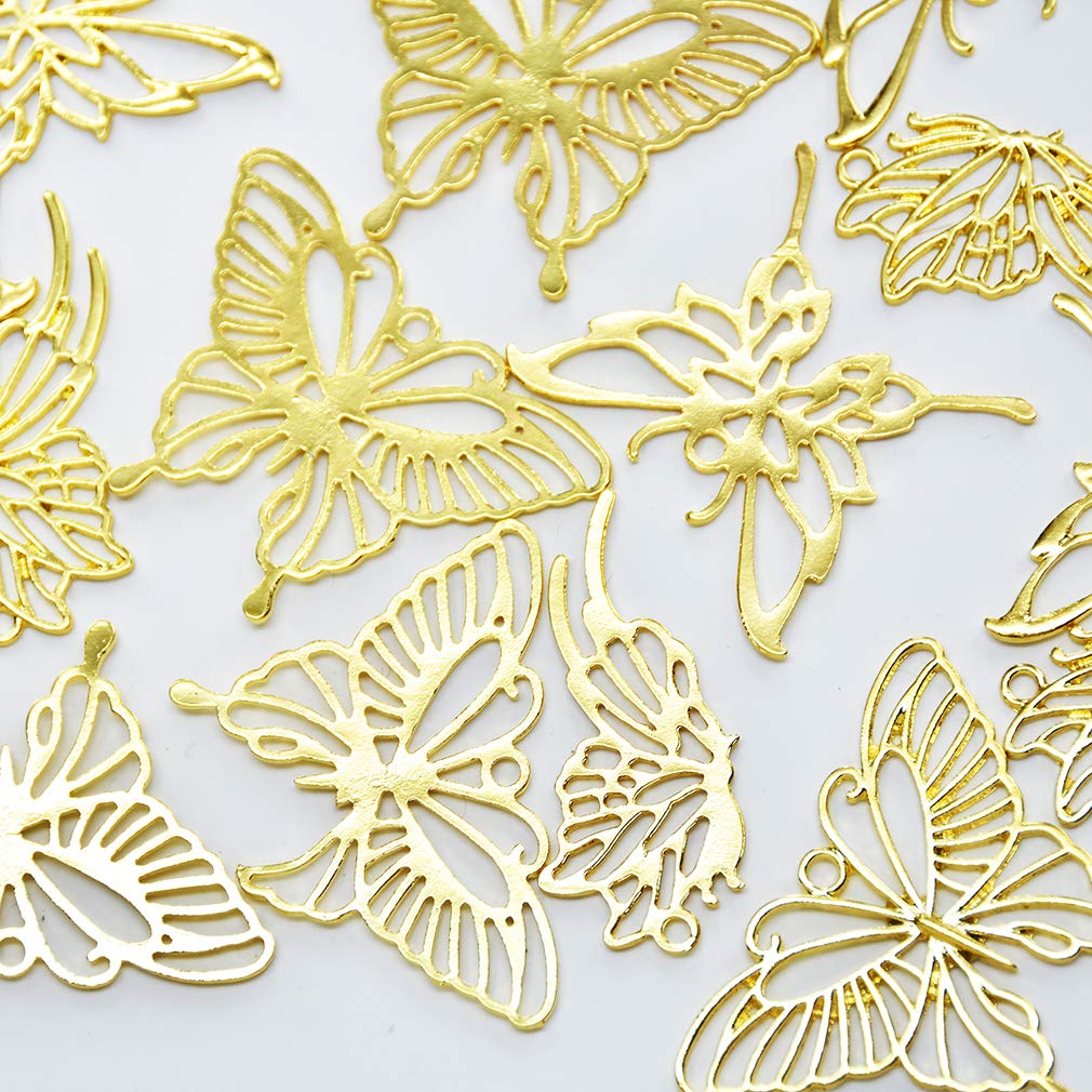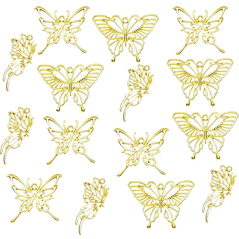 レジン枠 空枠 フレーム MUNCVY パーツ ゴールド 3種15個 セット uvクラフト 大量 カン付き 蝶 和風 美しい セッティング アクセサリーパーツ から枠 手作り uvレジン ペンダント ハンドメイド