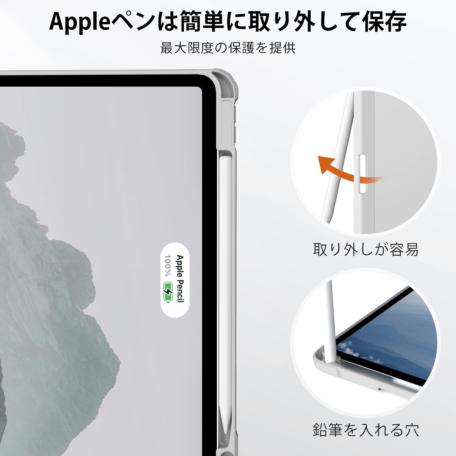 【Apple Pencil収納可能】内蔵の鉛筆スロットは、Apple Pencilを保管するための安全で便利な場所を提供します。また、Apple Pencil 2 ワイヤレス充電も可能なので、収納や持ち運びに便利です、いつでもどこでもiPadを快適に使えます。