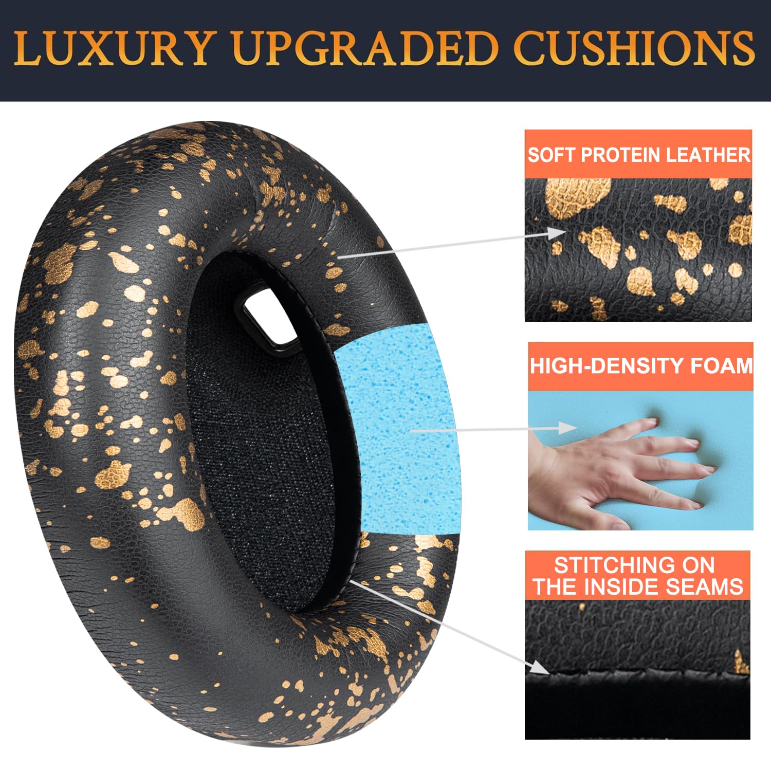 SOULWIT イヤーパッド イヤークッション 交換パッド、Sony WH-1000XM4 (WH1000XM4) ヘッドセット用 ヘッドホンパッド 互換性 パッド ソフトレザー 高密度フォーム 厚みを追加 イヤーカップ (ブラックゴールド)
