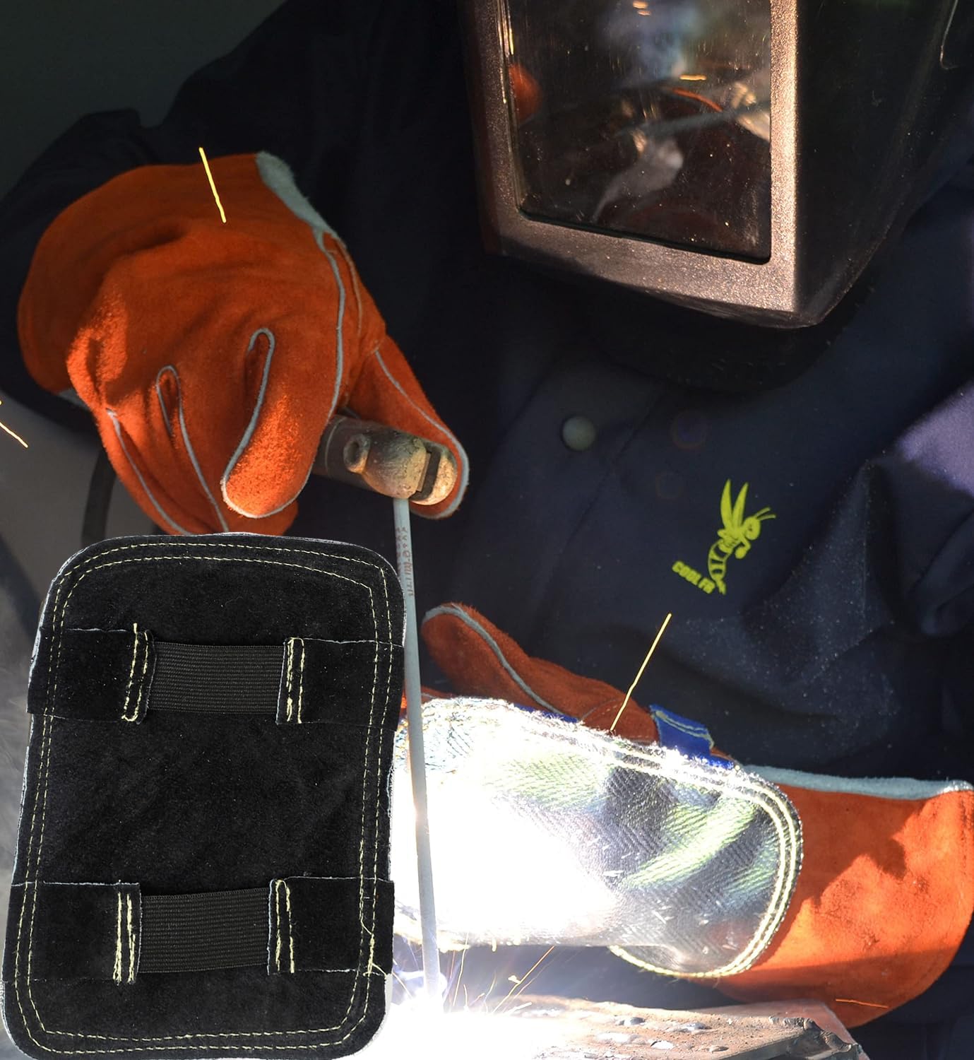 【数量限り】溶接ハンドシールド ハンドヒートシールド 溶接ハンドパッド 溶接手甲 溶接用手袋 やけど防止 牛革製です 作業手袋 安全手袋 溶接用グローブ 断熱 耐火性 高温抵抗 製鉄 冶金鍛造 溶接作業 や窯焼き作業 ブラック