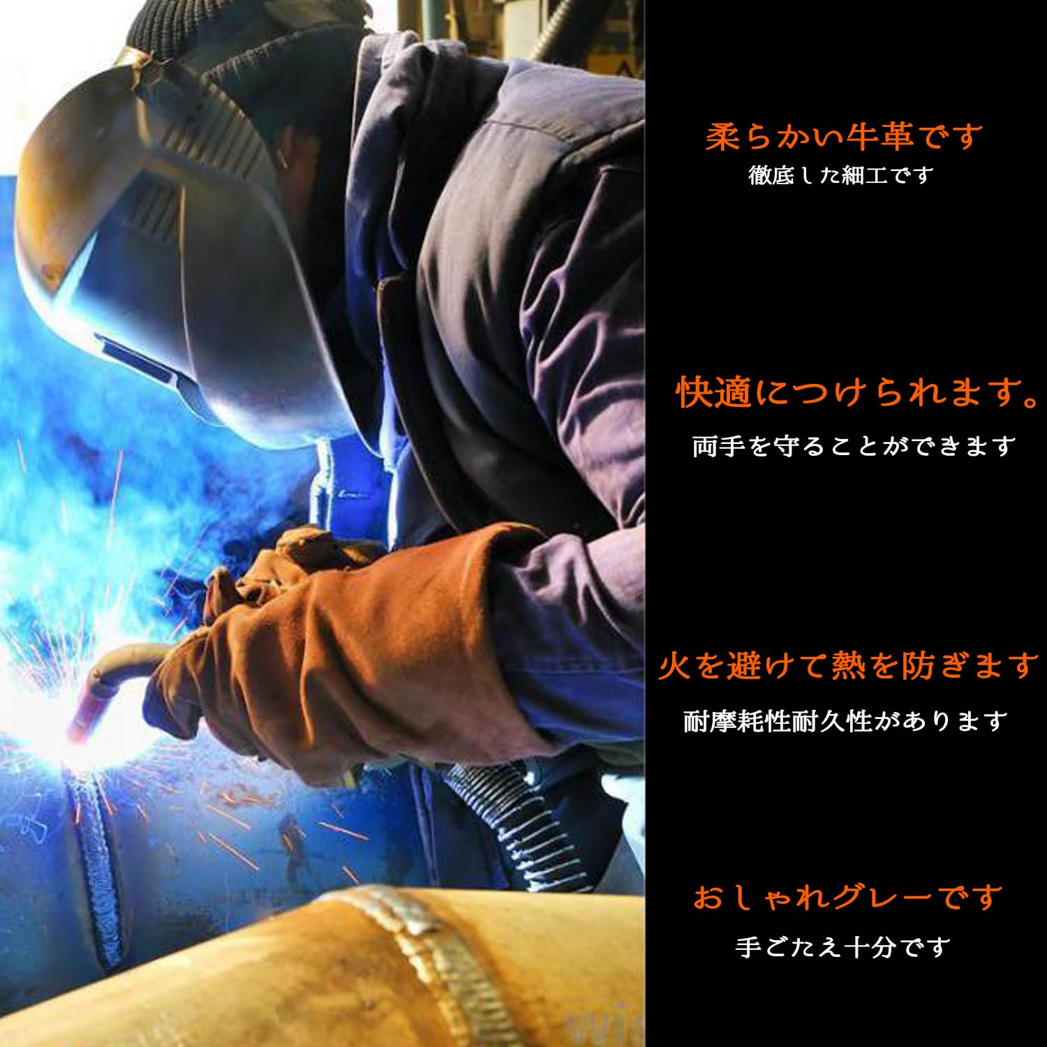 溶接ハンドシールド ハンドヒートシールド 溶接ハンドパッド 溶接手甲 溶接用手袋 やけど防止 牛革製です 作業手袋 安全手袋 溶接用グローブ 断熱 耐火性 高温抵抗 製鉄 冶金鍛造 溶接作業 や窯焼き作業 ブラック
