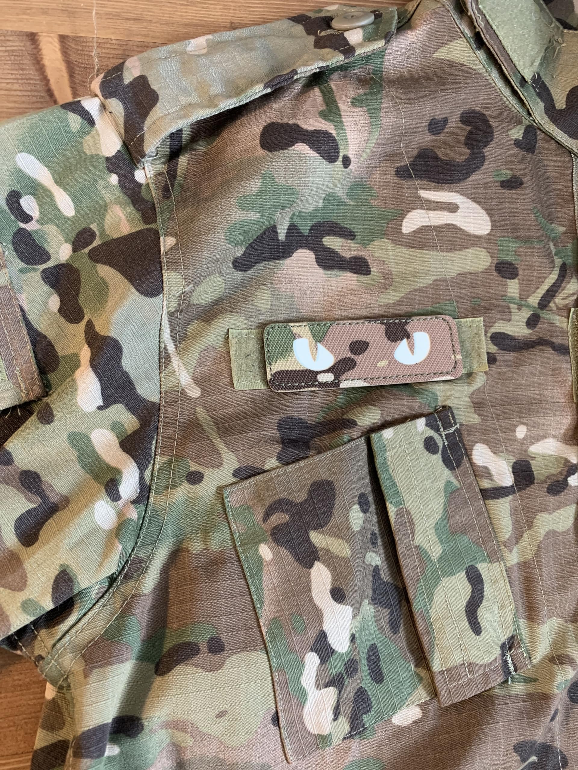 【在庫のみ】ワッペン屋Dongri 刺繍 サバゲー パッチ ワッペン 着脱式(マジックテープ、ベルクロ対応) 面ファスナー ミリタリー 猫 目 A0591 (マルチカム)