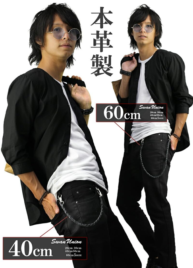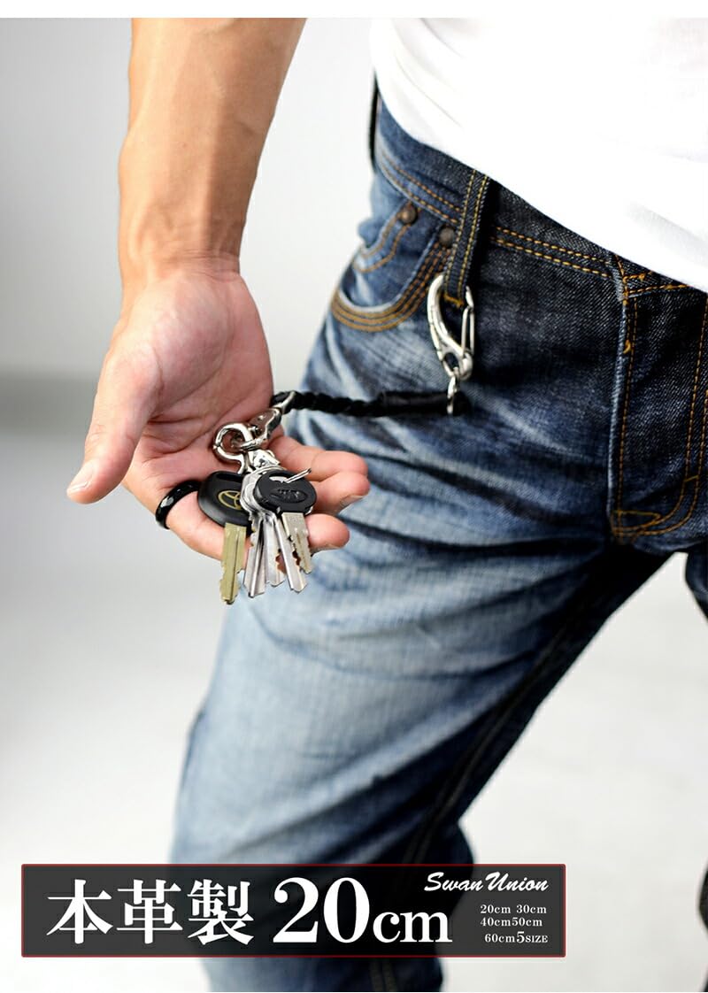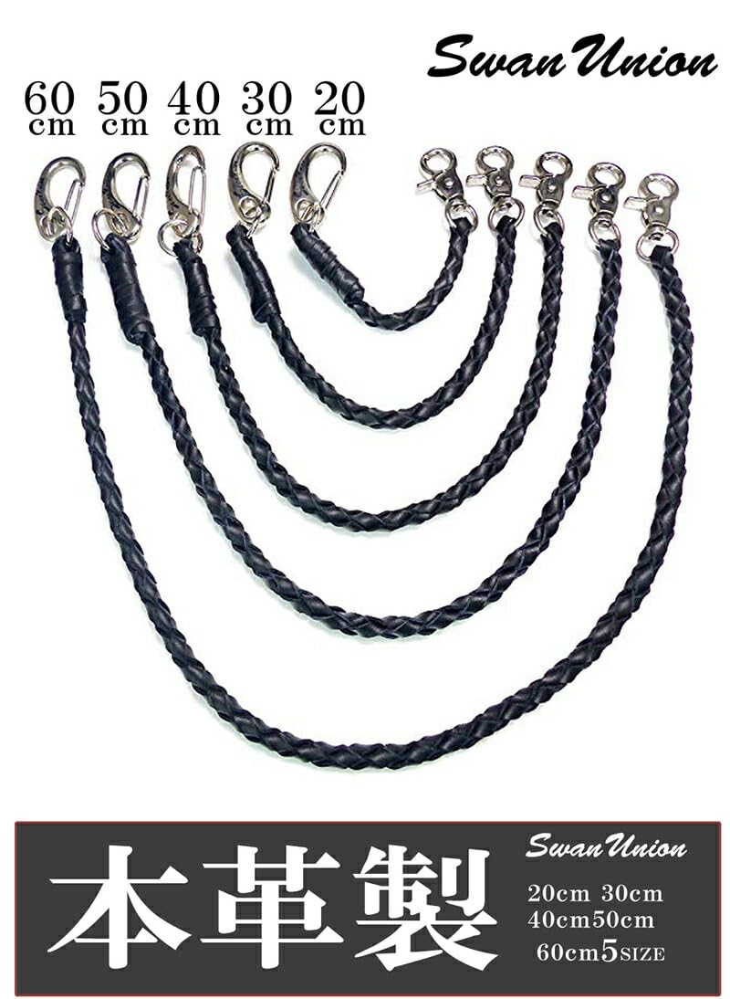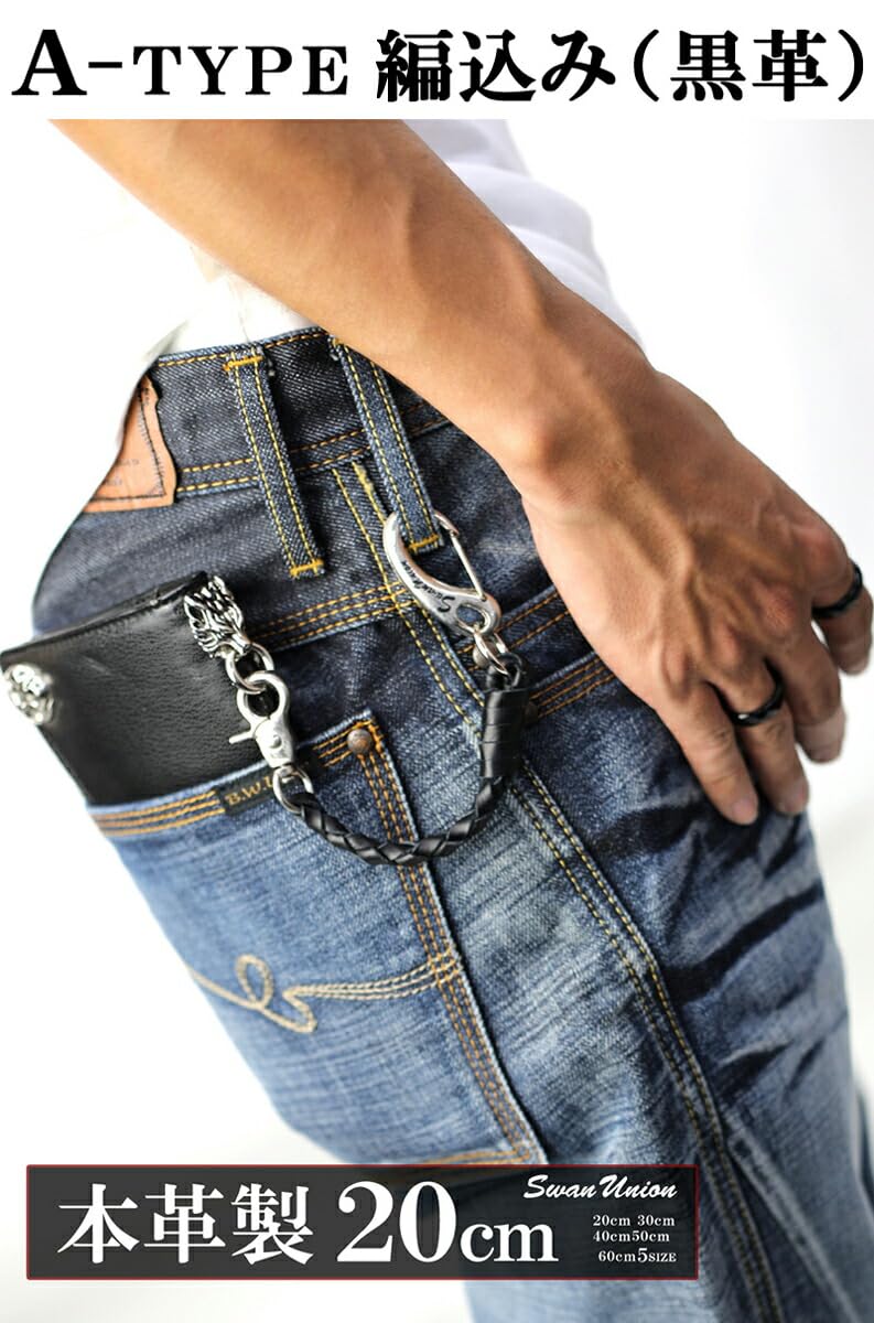 【数量限り】[スワンユニオン] 本革 ウォレットロープ メンズ 50cm 黒 ウォレットコード 革 手編み バイカー レザー 財布 ファッション ウォレットチェーン chwx20-50-va1