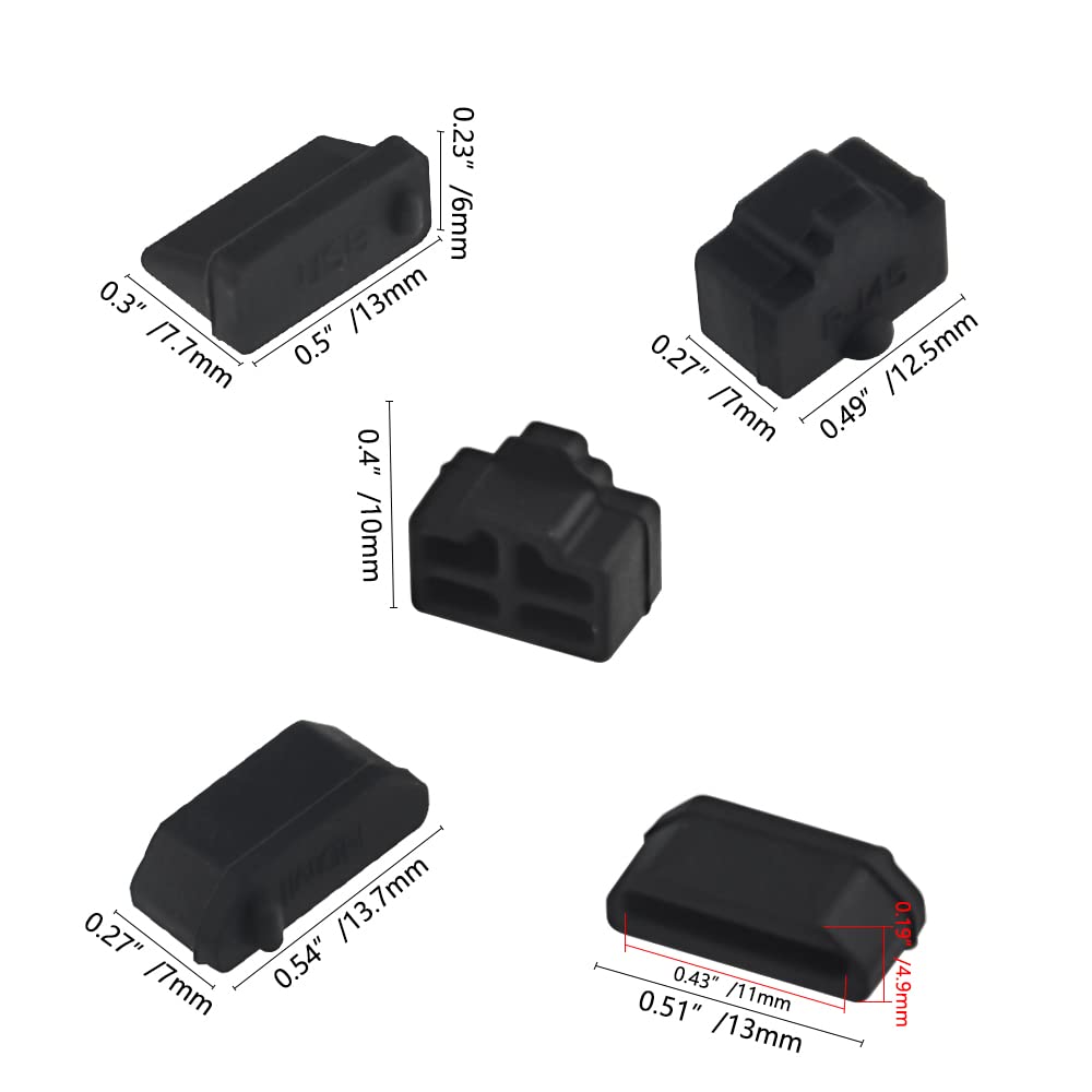 WMYCONGCONG 30個 USB A型ポート用 RJ45 LANポート用 HDMIメスポートソケットコネクタ用 シリコン防塵保護カバー コネクター カバー キャップ 黒