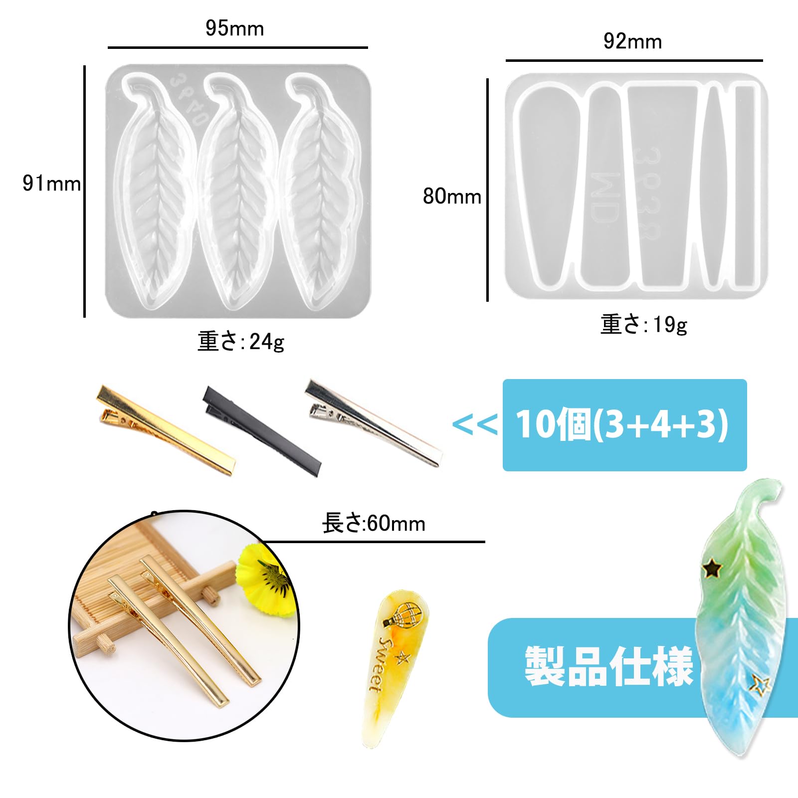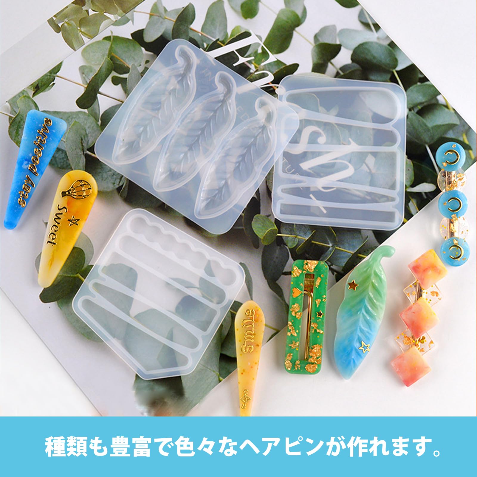 【広い適用】:このレジン モールドは ヘアクリップ 型です。種類も豊富で色々なヘアピンが作れます。自分の好みにあわせて色を変えたり、お好きなラメやパーツ、デコ素材を組み合わせたりすることができます。