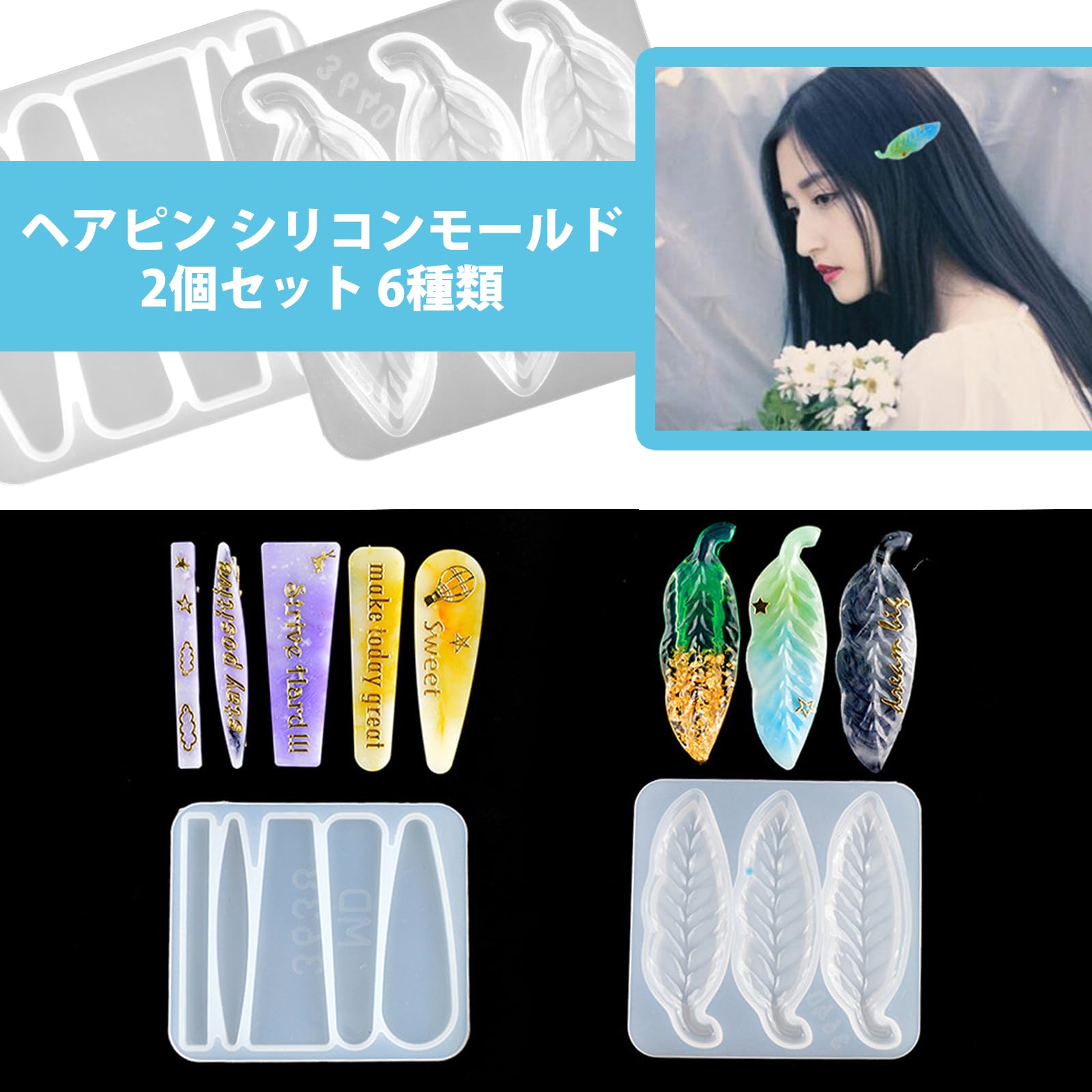 【努力特価】ヘアピン シリコンモールド 2個セット 6種類 ヘアクリップ レジン シリコン モールド 長方形 葉型 金具クリップ10個付き uv レジン 型 エポキシ樹脂 ソフトモールド ハンドメイド DIY 樹脂 工芸品 作成 半透明 オリジナルギフト