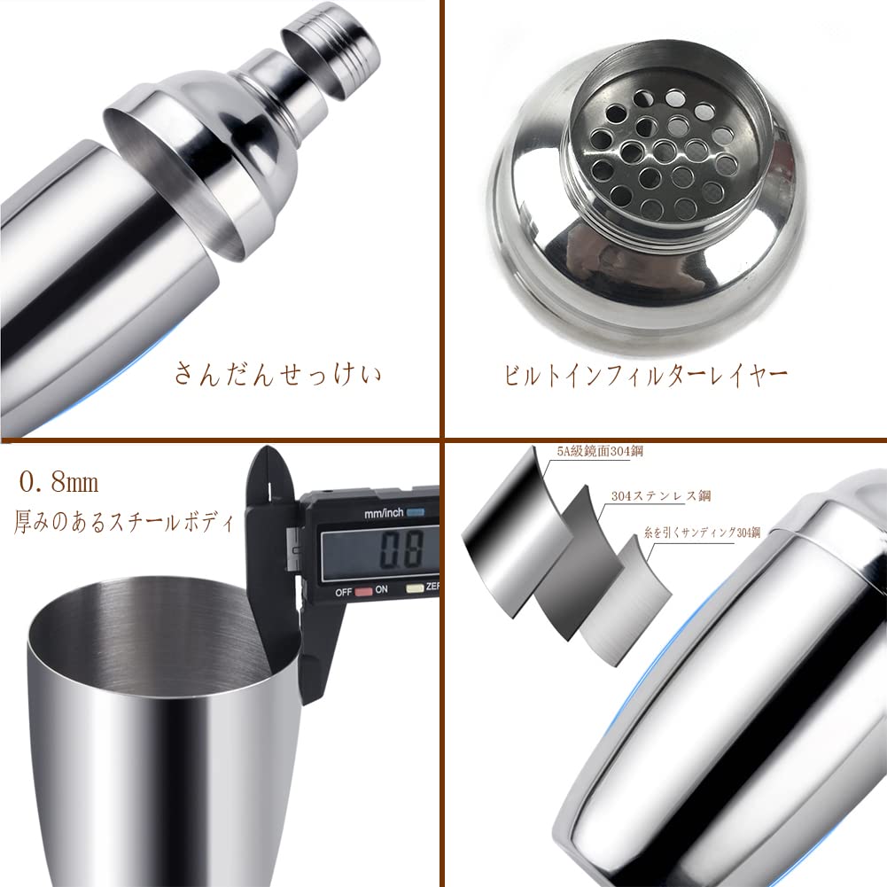 製品詳細:このカクテルセット、揺杯は無磁性304ステンレス材質で、強化された耐落下カップ体、耐寒耐高温。三段式セグメント設計、リングファスナー。ポットの蓋は緊密で、揺合しても水が漏れず、濾過層は茶葉、氷かすなどを濾過するのに便利である。
