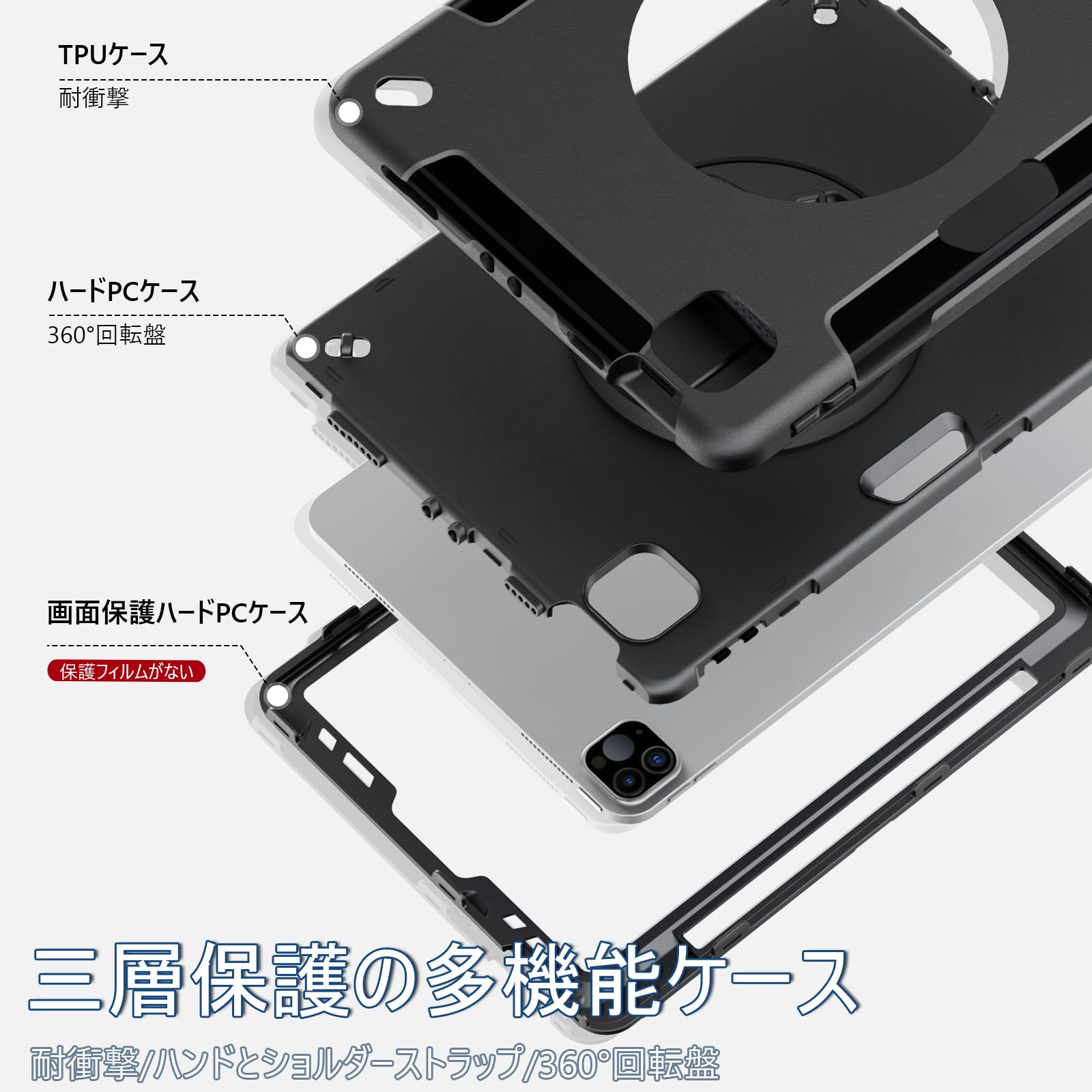 「全身保護」:このiPad Air 第5世代 ケースは軍用レベル認証があります。三層保護、本体を包んで一体で、10回の衝撃が保護できます。約2mの高さで、落下させても大丈夫です。環境保全に役立つ材料、精密カット、耐衝撃、保護力強化、防塵などの機能。移動、持ち運び、子供遊びが頻繁などの場合にこの耐衝撃iPadケースはお客様に役立ちます.