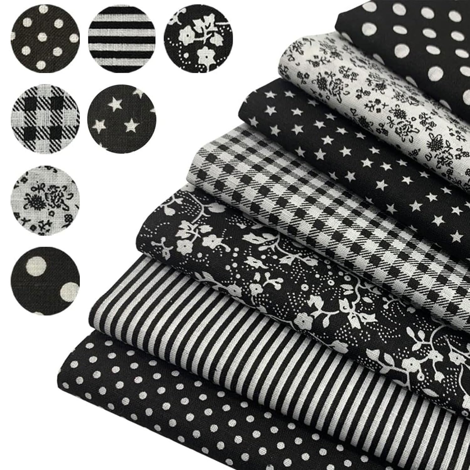 SaveSooo 生地 布 パッチワーク生地 花柄 パッチワーク布 カットクロス 綿 DIY手芸用 可愛い柄の布 はぎれ ハギレ ハンドメイド 小花 はぎれ 花 縫う手作り パッチワー 室内装飾はぎれ セット 激安 生地 布 おしゃれ (黒 25*25cm 7枚図案セット)