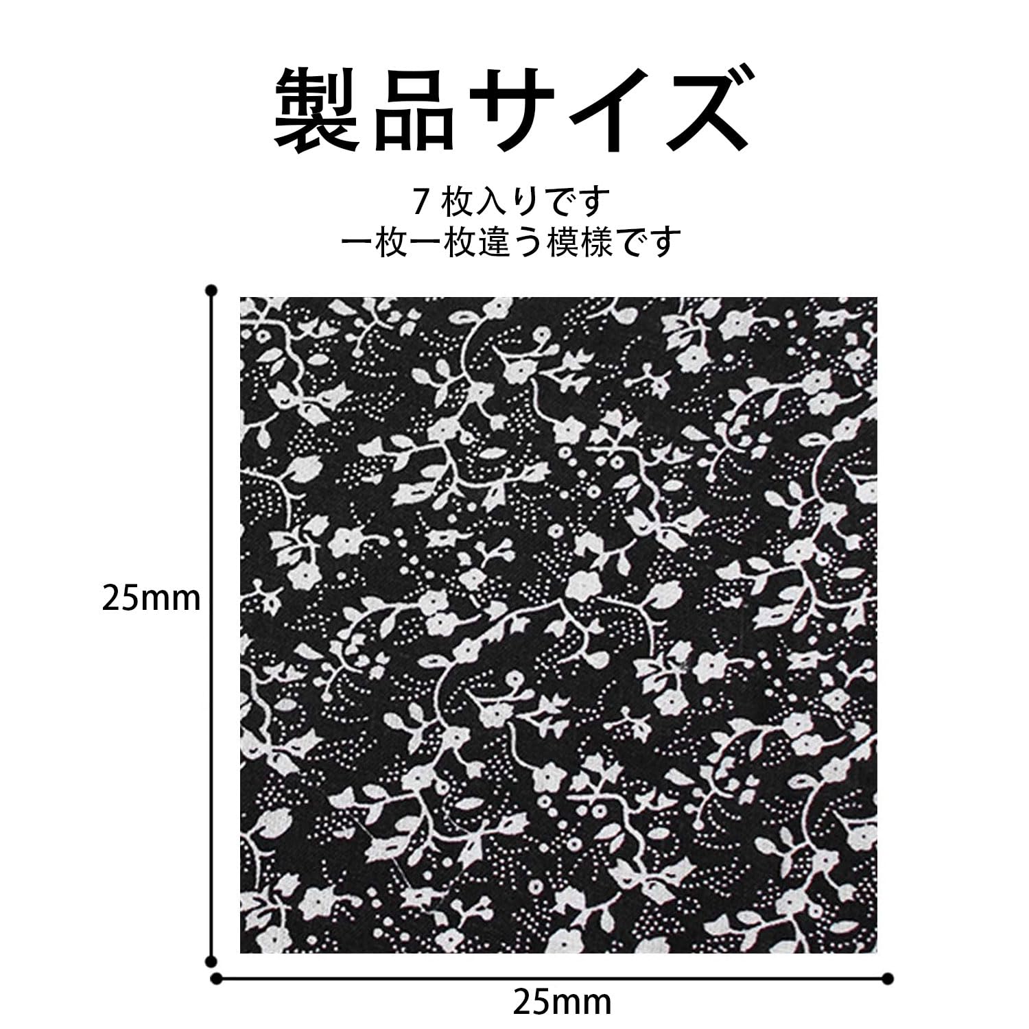 生地 布 パッチワーク生地 花柄 パッチワーク布 カットクロス 綿 DIY手芸用 可愛い柄の布 はぎれ ハギレ ハンドメイド 小花 はぎれ 花 縫う手作り パッチワー 室内装飾はぎれ セット 生地 布 おしゃれ (黒 25*25cm 7枚図案セット)