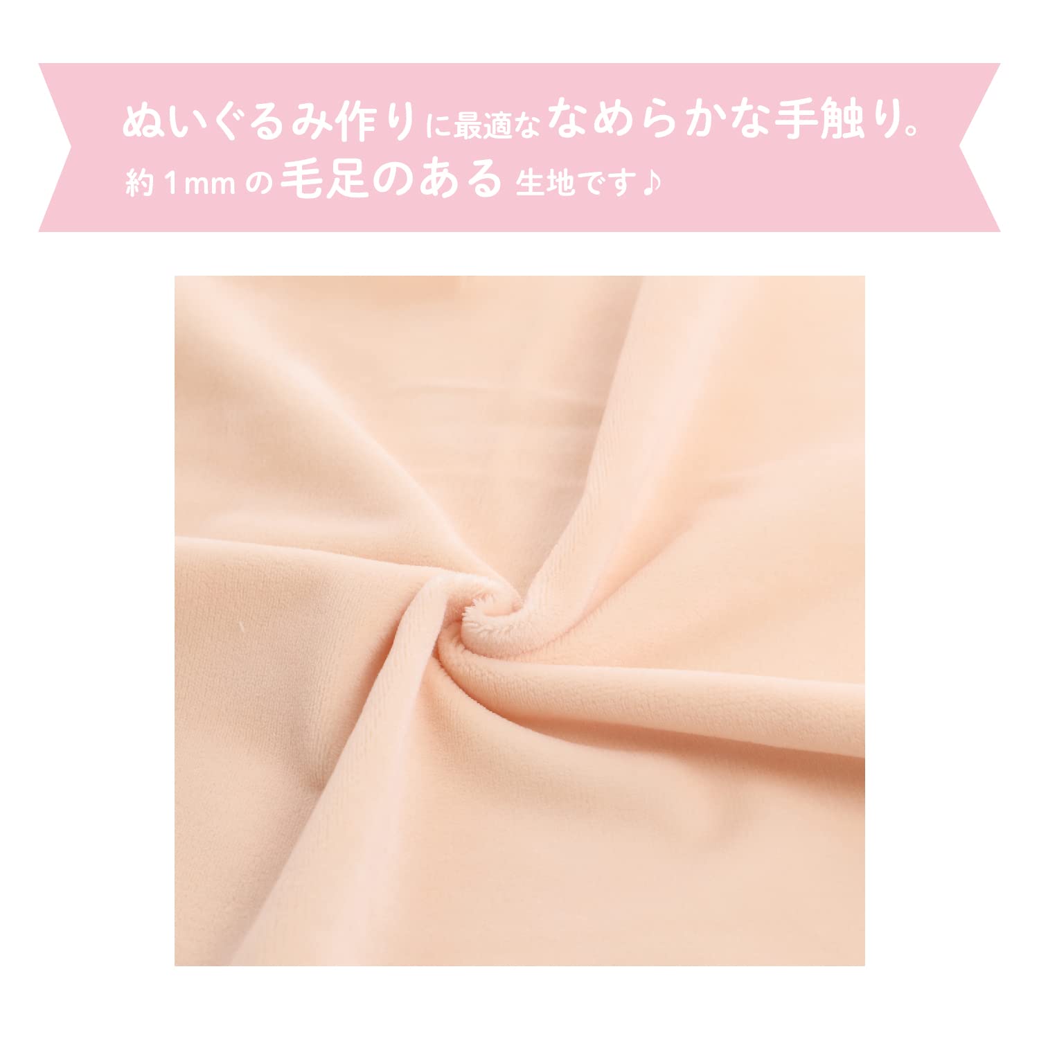 ぬいぐるみ作りに最適な、なめらかな手触りで約1mmの毛足のあるやわらかなニット生地です。
