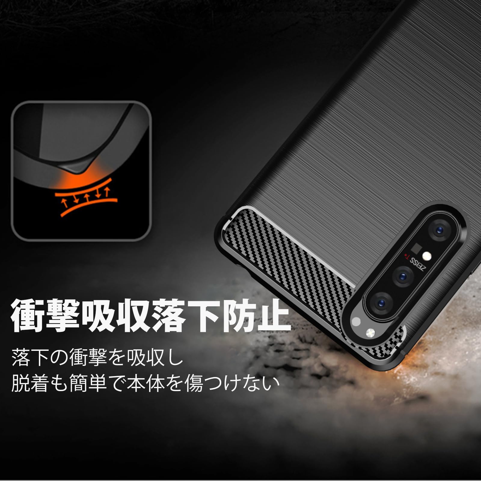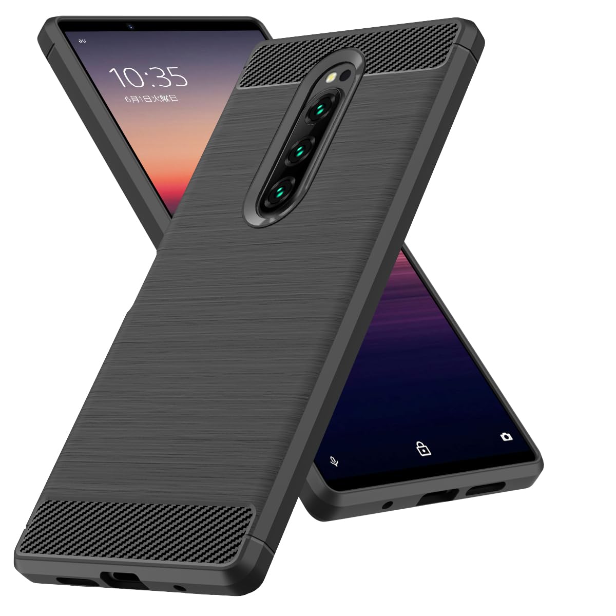 Xperia 1 用ケース 耐衝撃 TPU 薄型 軽量 ソフト エクスペリアXZ4 SO-03L SOV40 用カバー カーボン風 デザイン ワイヤレス充電 角保護強化 柔らかい 耐久 指紋防止 黄変防止 滑り止め 人気 保護カバー ブラック JP4-13