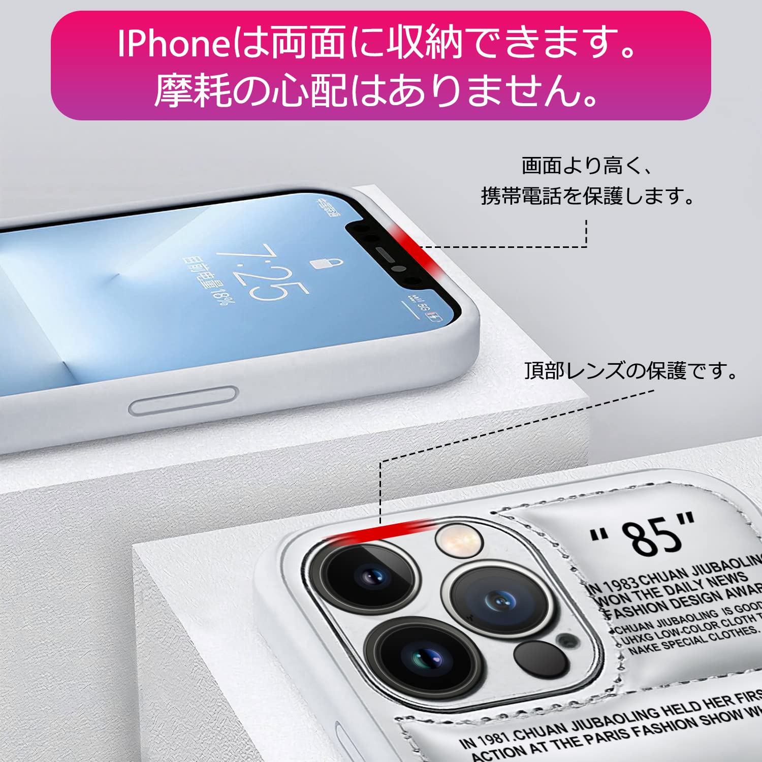 【適用型番】iphone15 pro max 用 ケース?6.7 インチ。iphone15 promaxケース ご購入前に携帯電話のモデルをご確認ください。iphone 15 pro maxケースは液晶画面より1.2mm、iphone15 pro maxカメラレンズより1.5mm高いので、テーブルなどの平らな面に置いても傷の心配がありません。