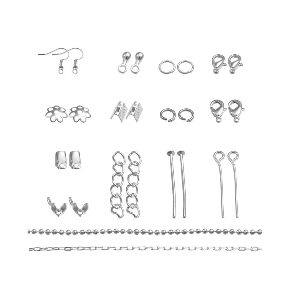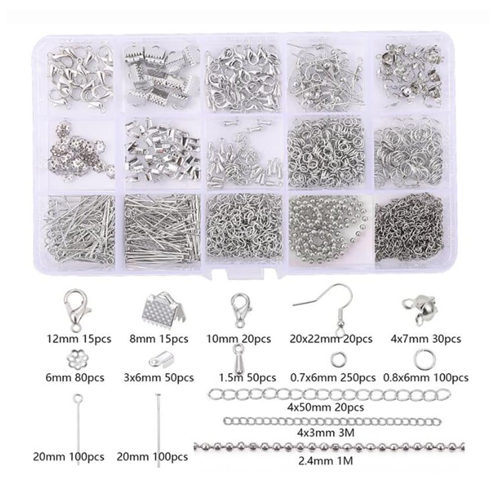 【数量限り】 金具セット 15種 ハンドメイド アクセサリーパーツセット ゴールド アクセサリー パーツ ジュエリー ボールチップ チェーン ワニ口 DIY用 手芸用品 (シルバー)