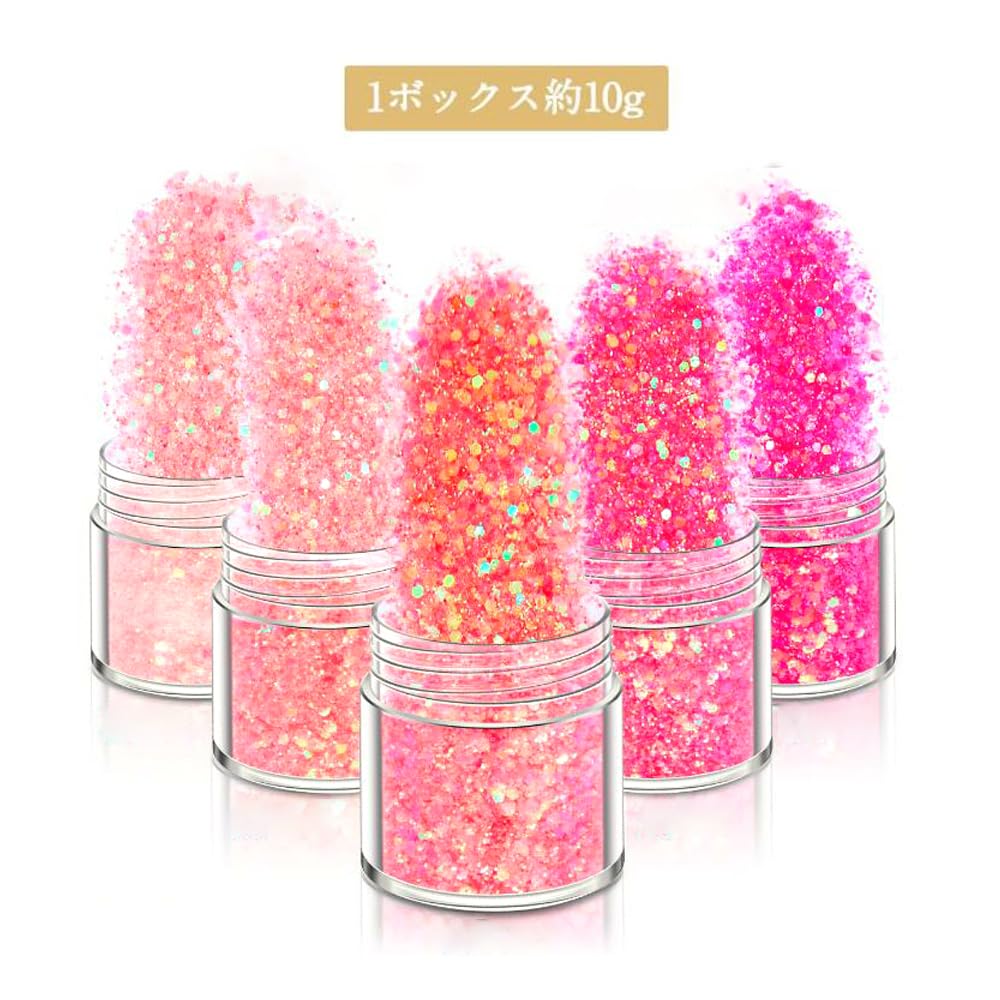 ラメホログラム 5色セット キラキラ ネイルパーツ ネイルアート 容器付き グリッター ラメグリッター ラメパウダー ネイルパウダー 顔飾り ヘア飾り 新年 クリスマス メイク用品 ゴールド (ピンク)