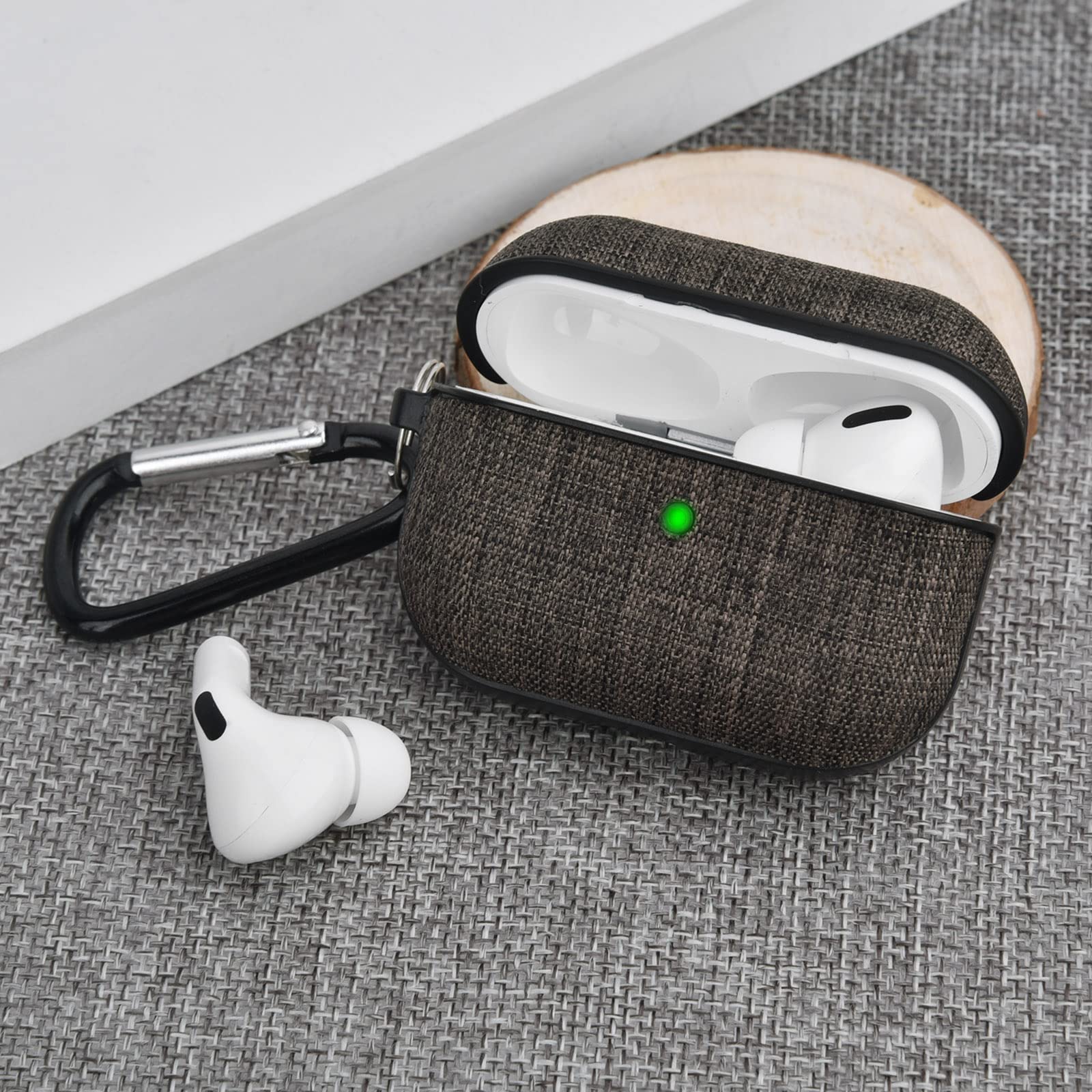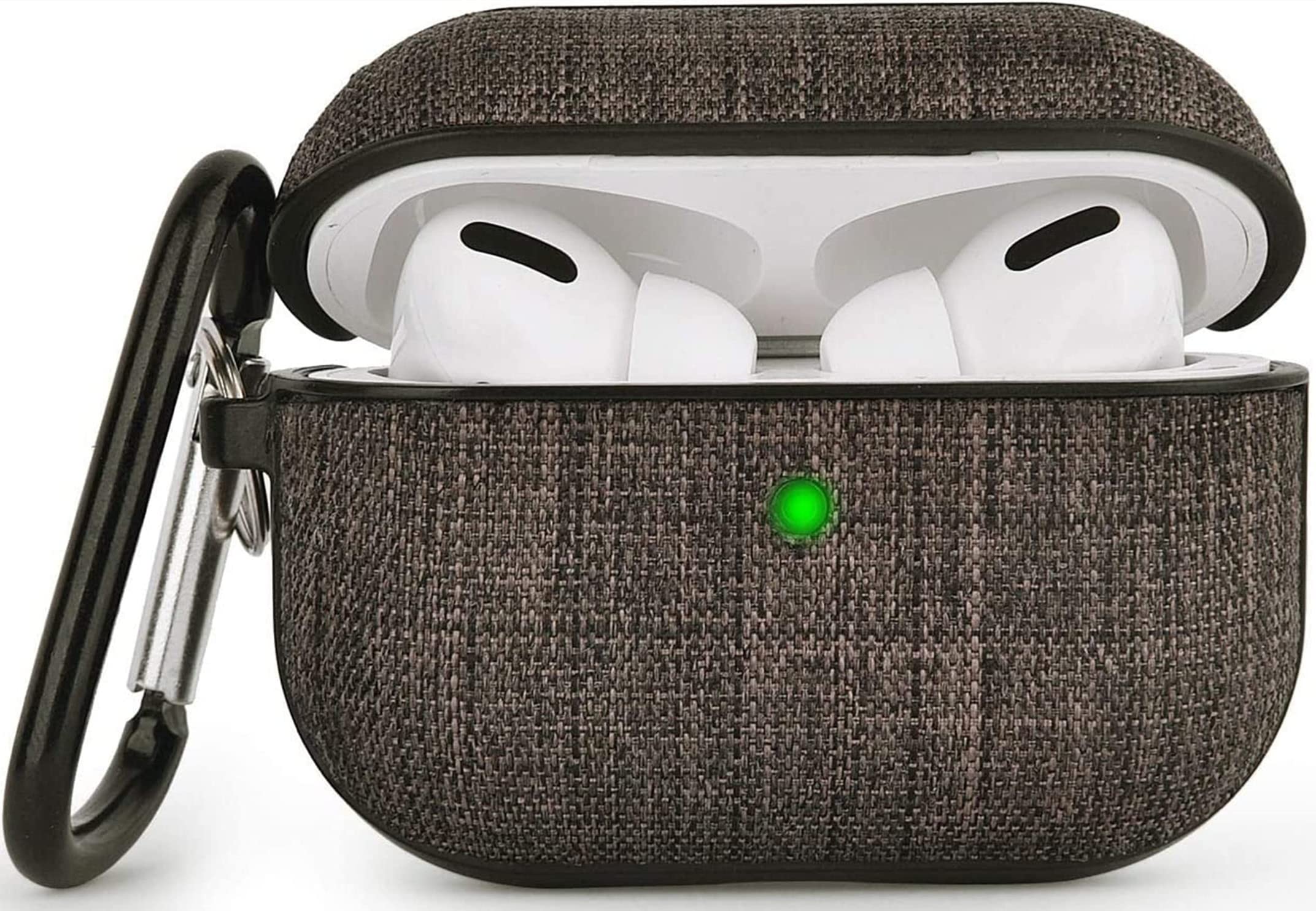 V-MORO AirPods Pro ケースカバー エアーポッツプロ ケース アップルイヤホン 保護ケースApple Airpods Pro収納ケース おしゃれ カラビナ付きLEDライトが見える 2019年10月発売用 ワイヤレス充電対応 キャンバス素材 耐衝撃 軽量 防塵 紛失防止 (ダークグレー)