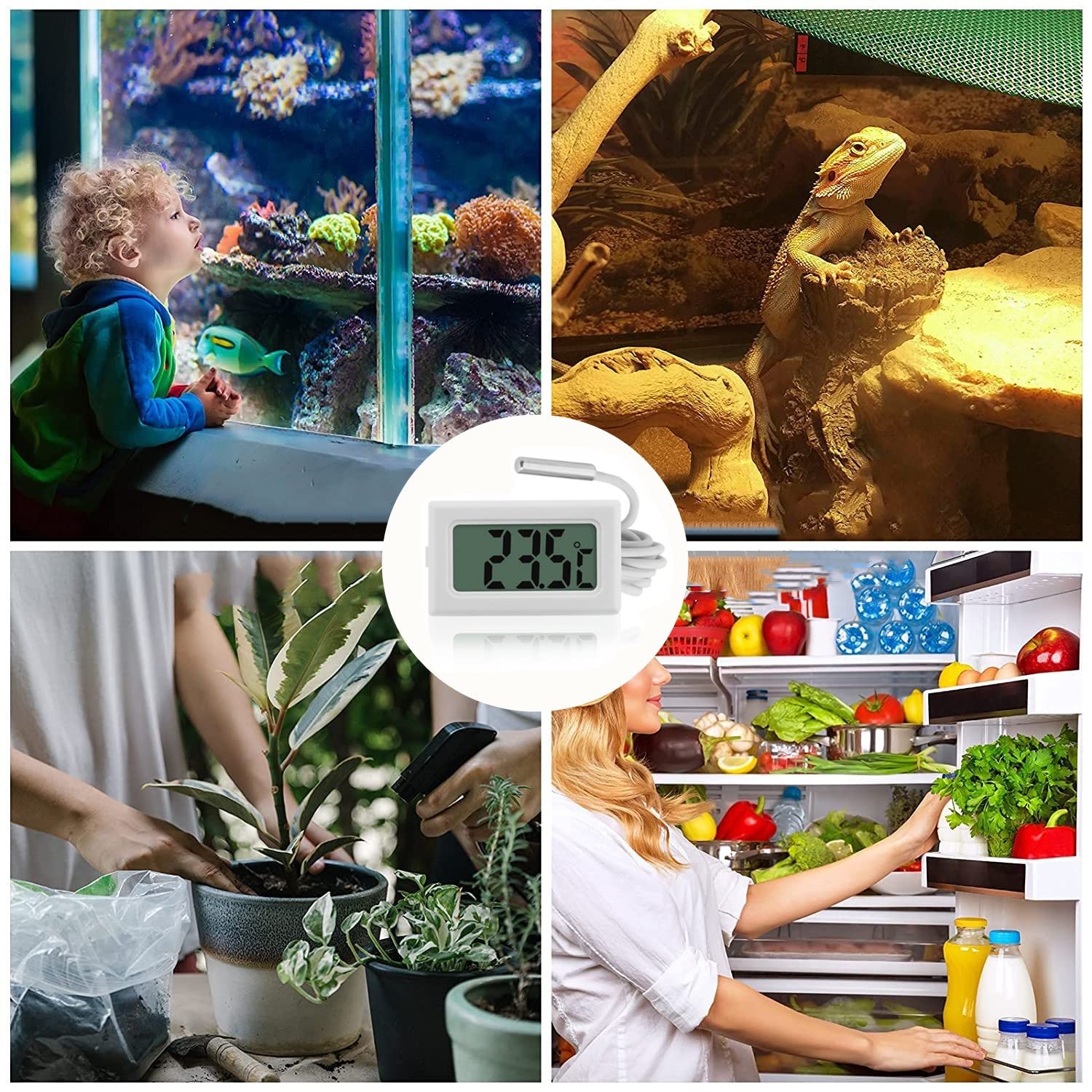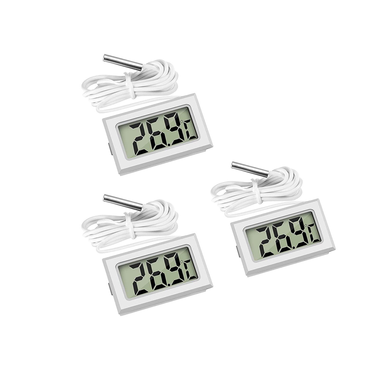 デジタルLCD温度計 温度計-50℃〜110℃ プローブ付き 爬虫類テラリウム魚タンク冷蔵庫用 水槽 水温管理 水族館温度計 (ホワイト 3個セット)