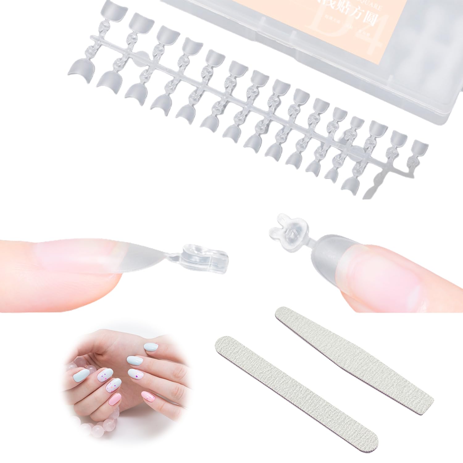 【努力特価】クリア チップ ネイルチップ ショート オーバル 短い【300枚入り】12サイズ 超薄型 半貼り ハーフチップ かわいい ウサギのハンドル 両面マット自然なフィット感 ゆるやかオーバル ノンサンディング練習用 業務用 DIY用 付け爪 ネイルファイル 2本付き( 100/180サンドペーパー)