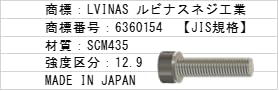 強度区分「12.9」の高強度、一般的な市販の鉄材ナマ材のボルトは強度区分「3.6〜4.8」に対しこちらの製品は強度区分「12.9」を誇るクロモリ鋼です。