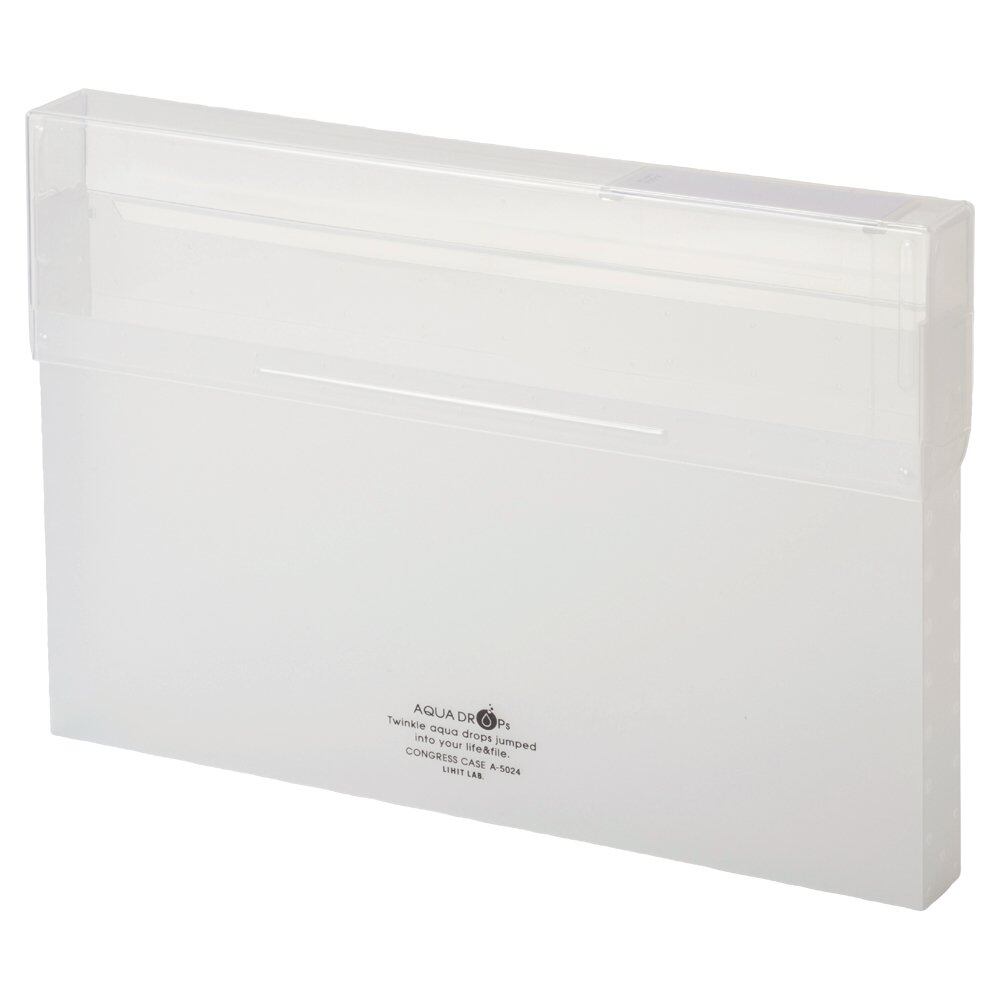 リヒトラブ コングレスケース ファイルケース A4 300枚収容 乳白 A5024-1 【収容量】コピー用紙300枚 【サイズ】A4 【付属】タイトル見出し付 【機能】フタが大きく開いて出し入れスムーズ 【寸法】幅37mm×奥行326mm×高さ228mm 32.6cm×3.7cm×22.8cm 大きく開いて取り出しやすいファイルケース。ダブルヒンジ構造でフタが大きく開くので、書類の出し入れがスムーズにできます。フタ部分は収納した書類が判別しやすいクリスタルタイプ。