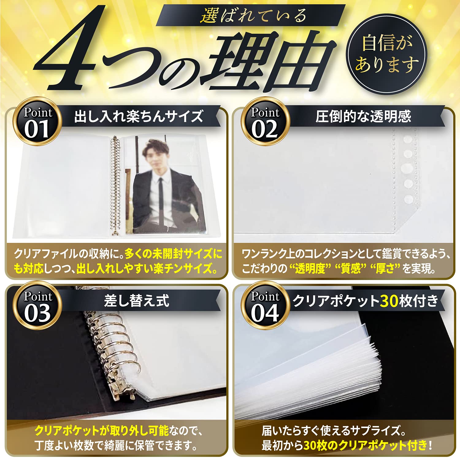 ハムデリー 差し替え式 クリアファイル収納ホルダー/ポケット30枚入り (カラー:ブラック) 度/大容量/厚みと質感 ホルダー クリアポケット ポケット クリア ファイル リフィル 収納 差し替え式 30穴 2穴 4穴 入 a4 クリアファイル 人気 バインダー