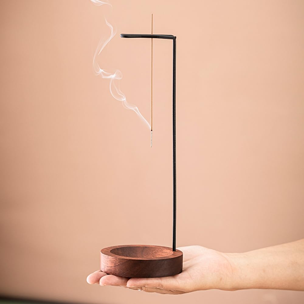 (吊り下げ式設計)吊り下げ式線香立て、線香は充分に燃焼することができ、もっと芳しい香りが出ます。ベースを外して、木製皿にアロマキャンドルを置いて使用することができます。いろんな使い方があり、お徳用な香立てです。