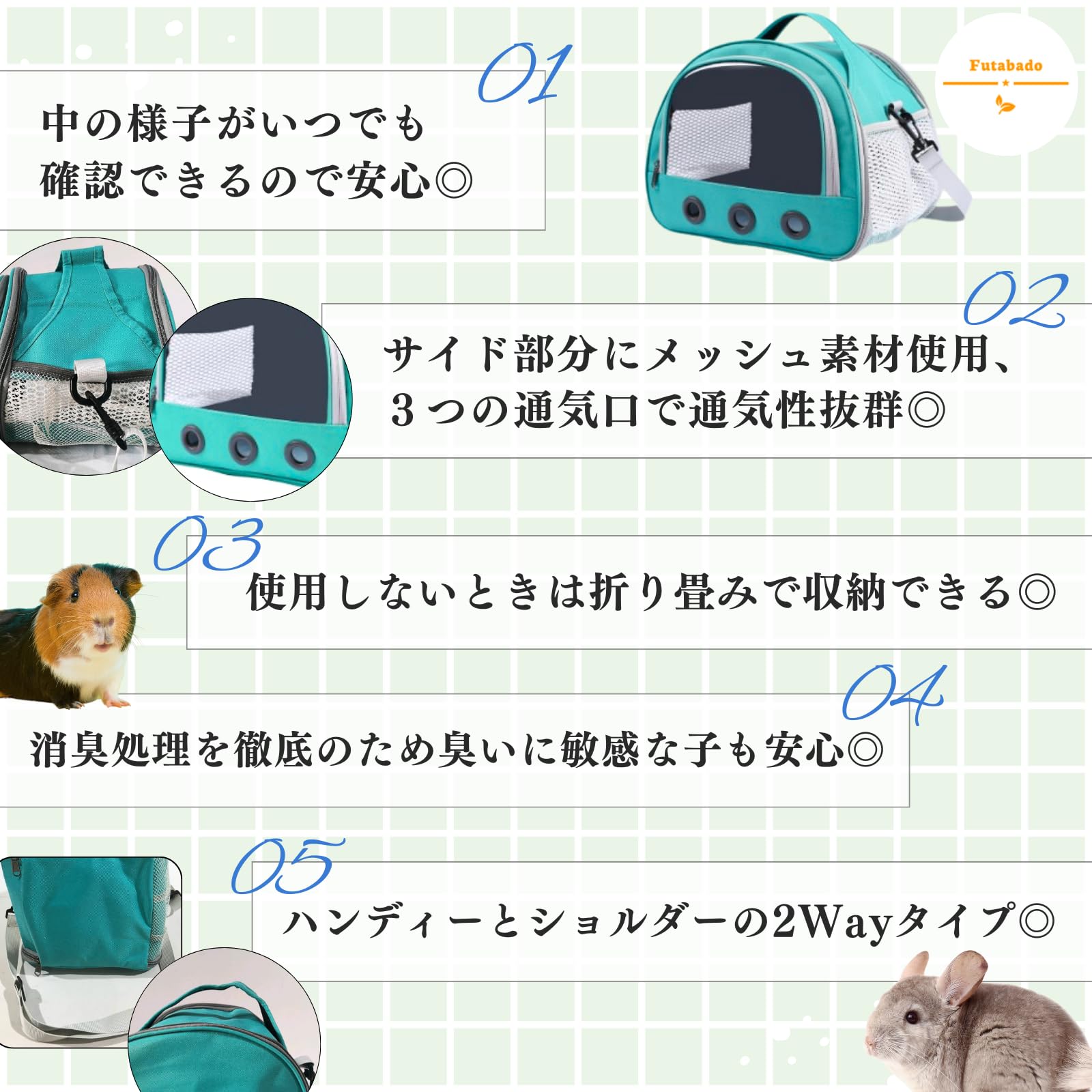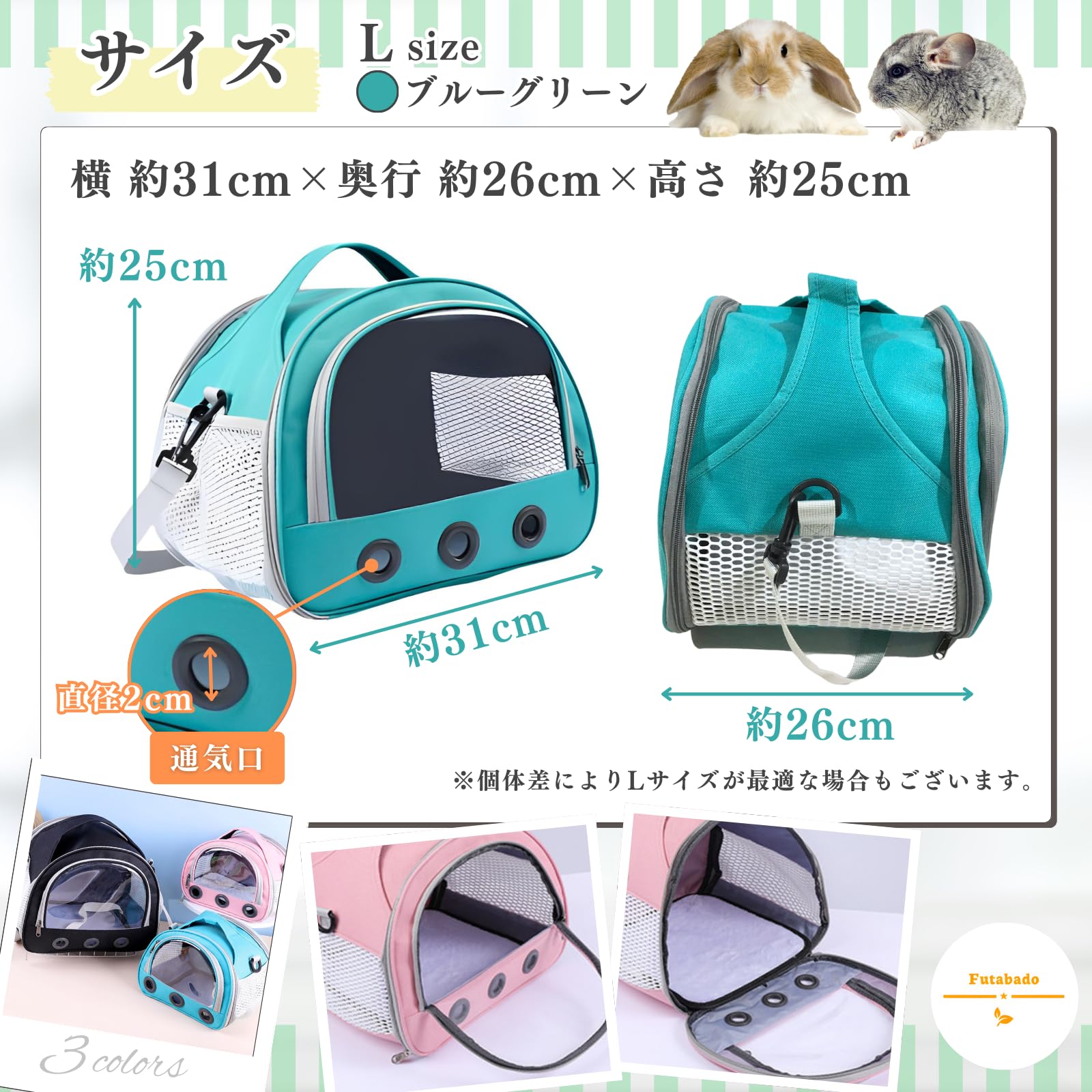【人気】小動物 キャリー うさぎ キャリーバッグ うさぎバッグ 兎 キャリーケース モルモット チンチラ フェレット 子猫 仔猫(ブルーグリーン large)