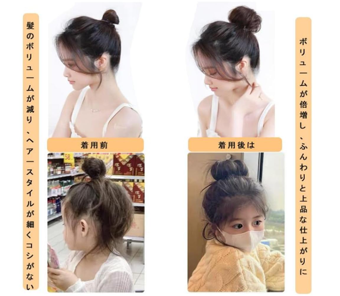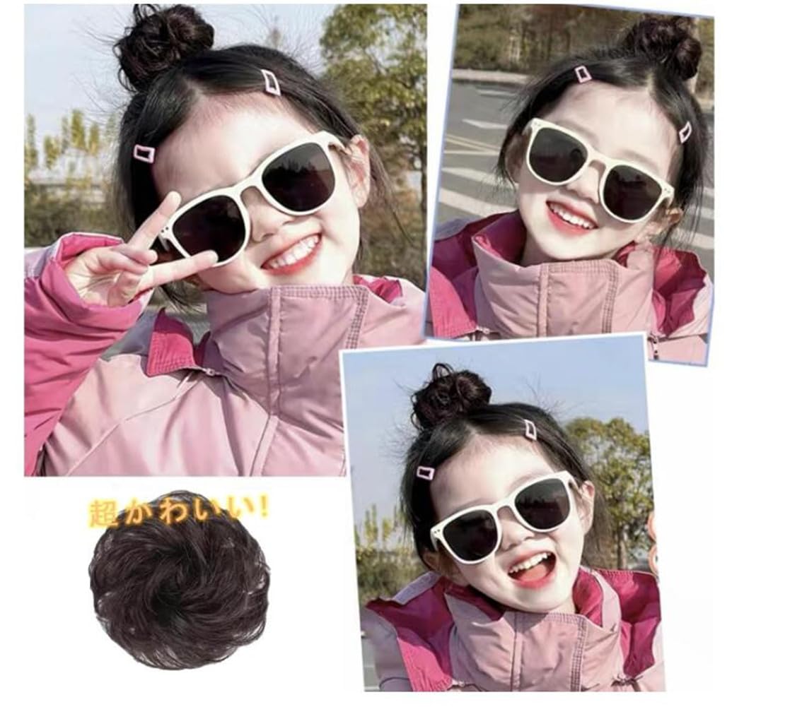お団子ウィッグ シュシュ ウィッグ お団子 ポイントウィッグ ゴムバンド 和装 シニヨン 髪飾り カール シニヨン キッズ レディース 可愛い 着物 装着簡単 自然感 七五三 髪飾り 結婚式 成人式 (B)