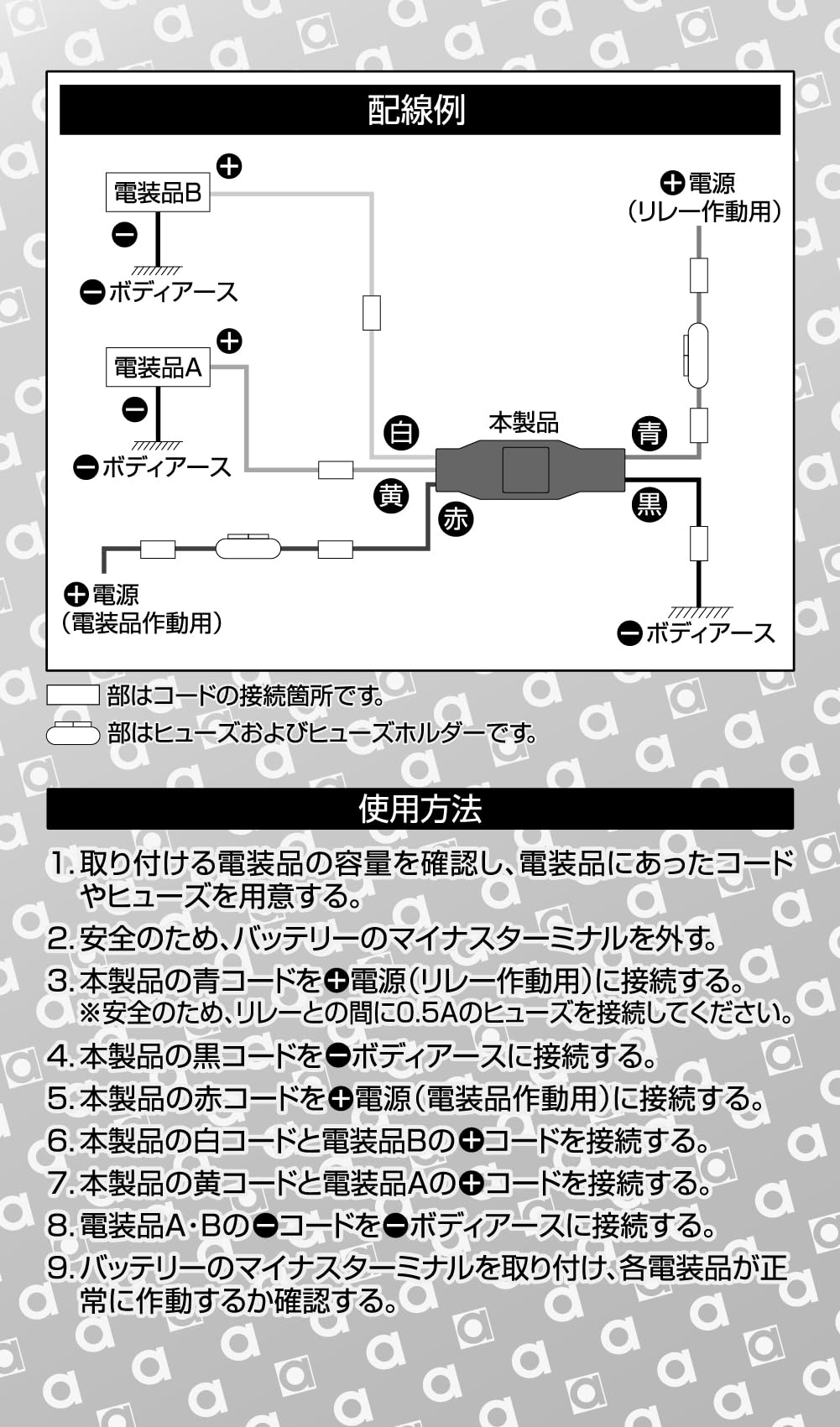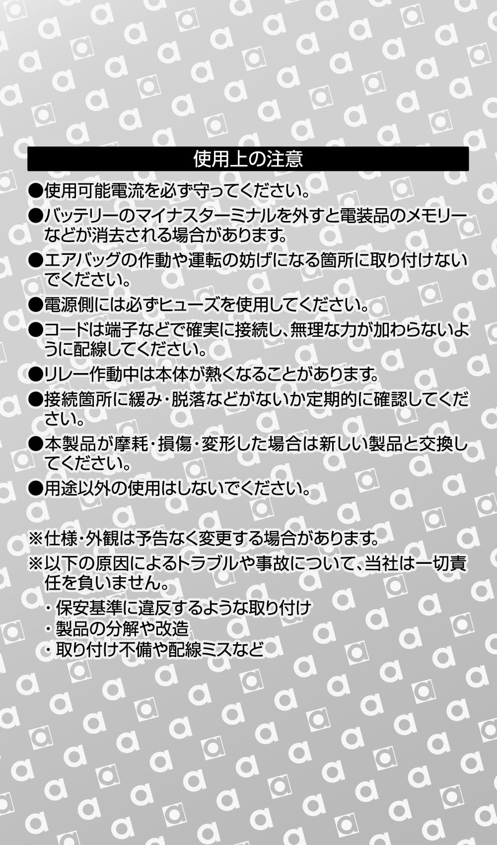使用可能電流:DC12V車専用/A・B接点 各10A以下