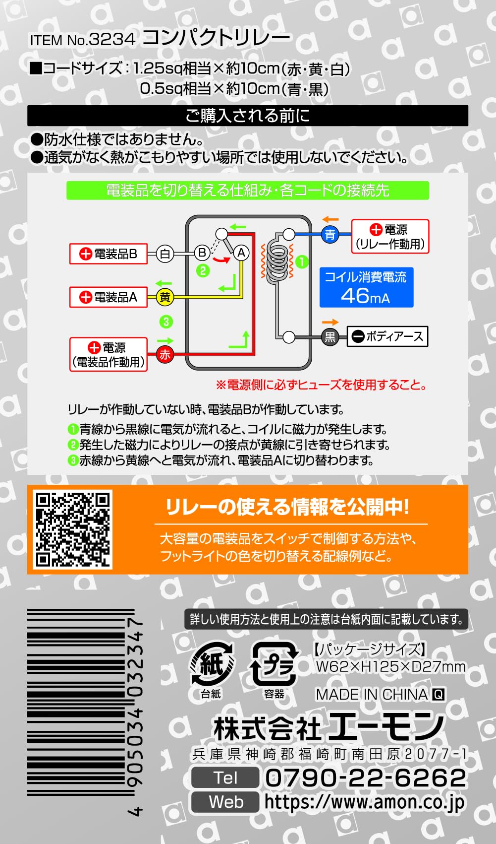 エーモン(amon) コンパクトリレー 5線(5極) DC12V車専用 2接点切り替えタイプ スイッチの切り替え 10Aまでの電装品の配線をサポート 電磁石 保護 3234
