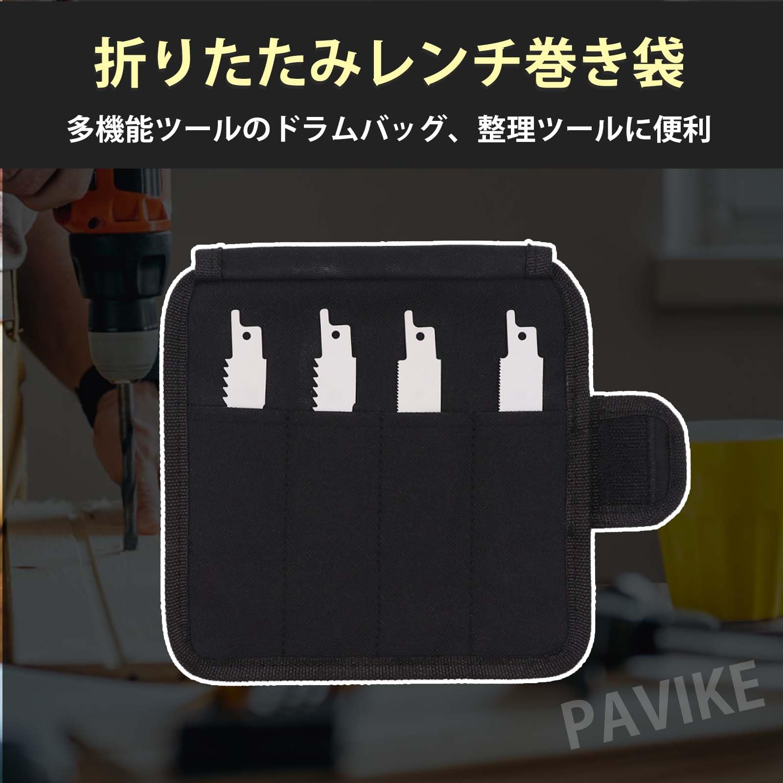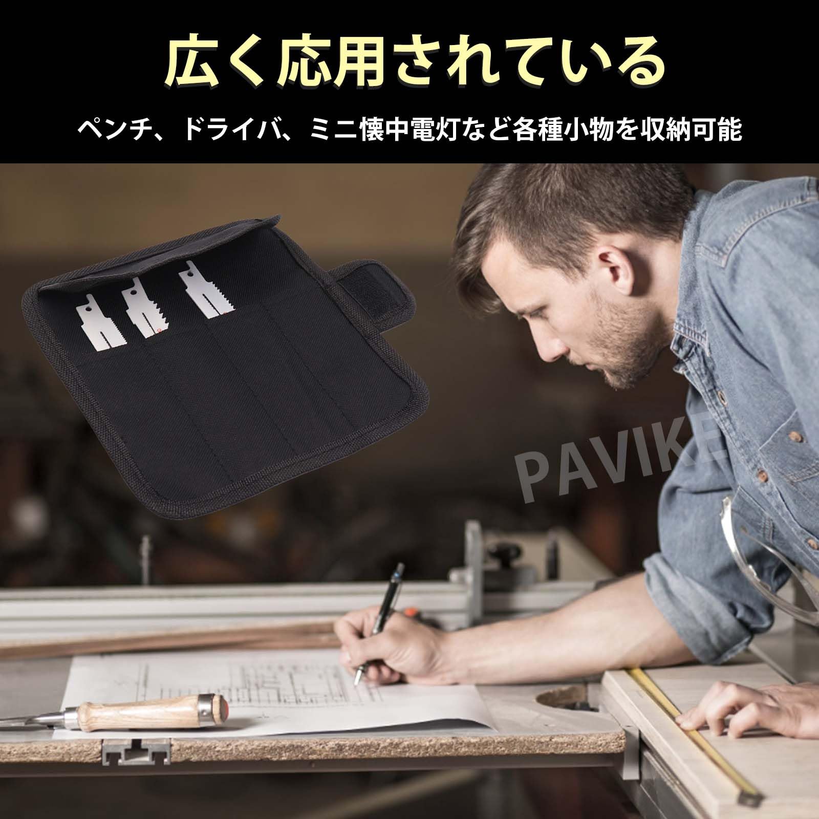 PAVIKE ツール収納バッグ ロールアップツールバッグ マジックテープで設計 高耐久 多機能ツールバッグ 持ち運びが簡単 ポータブルツールロール 工具の整理 作業効率の向上 家庭用、メンテナンス作業員、電気技師、大工、機械工に適しています(ブラック 約335x265mm)